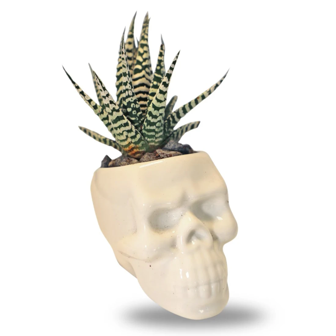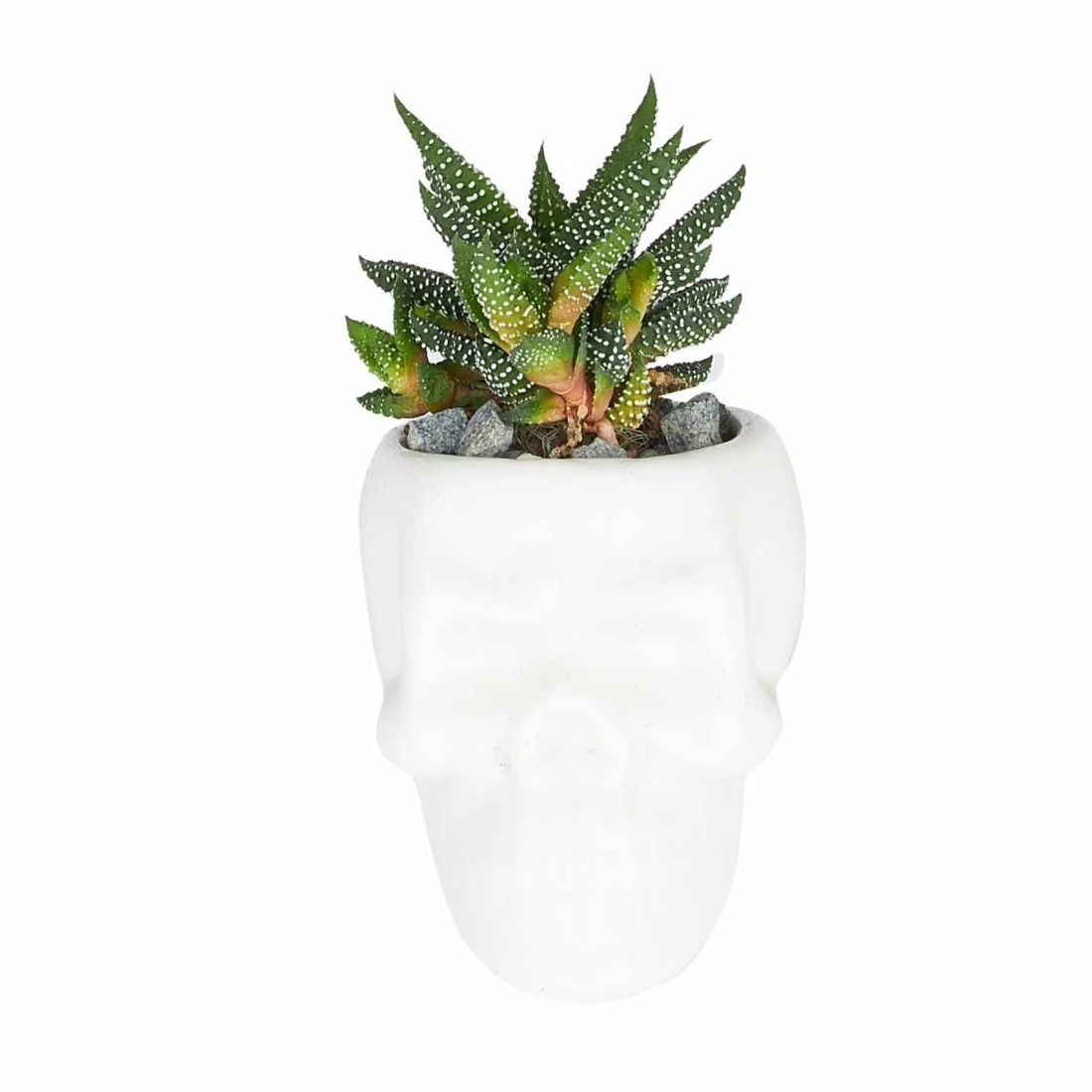 Enable Haworthia in White Skull Face Pot 15X8cm