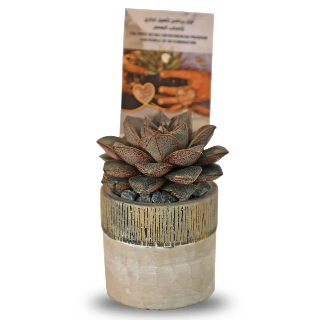 Enable Echeveria in Black Line Design Round Cement Pot 12X15cm