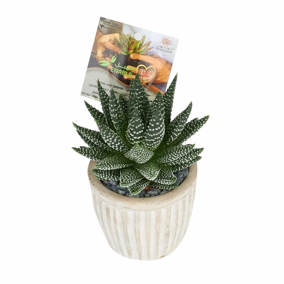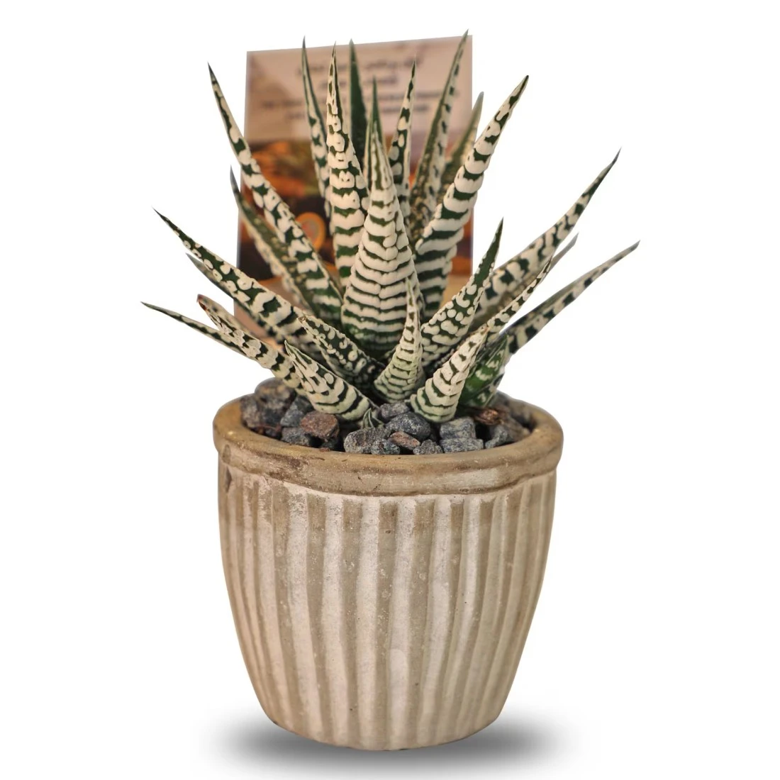 Enable Haworthia in Line Design Round Cement Pot 14X18cm