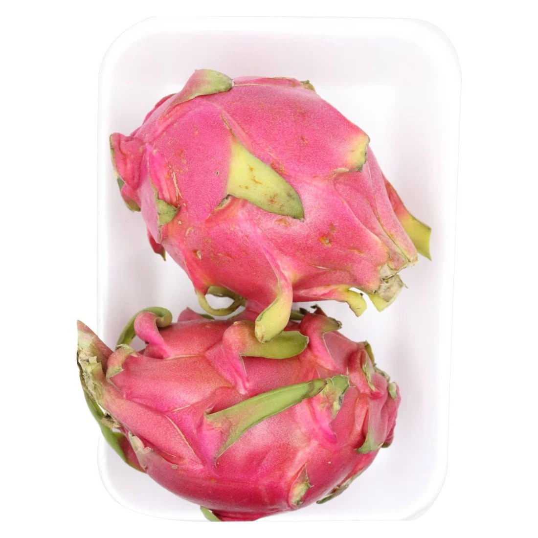 - The fruit is highly decorative, with a bright red skin, studded with green scales