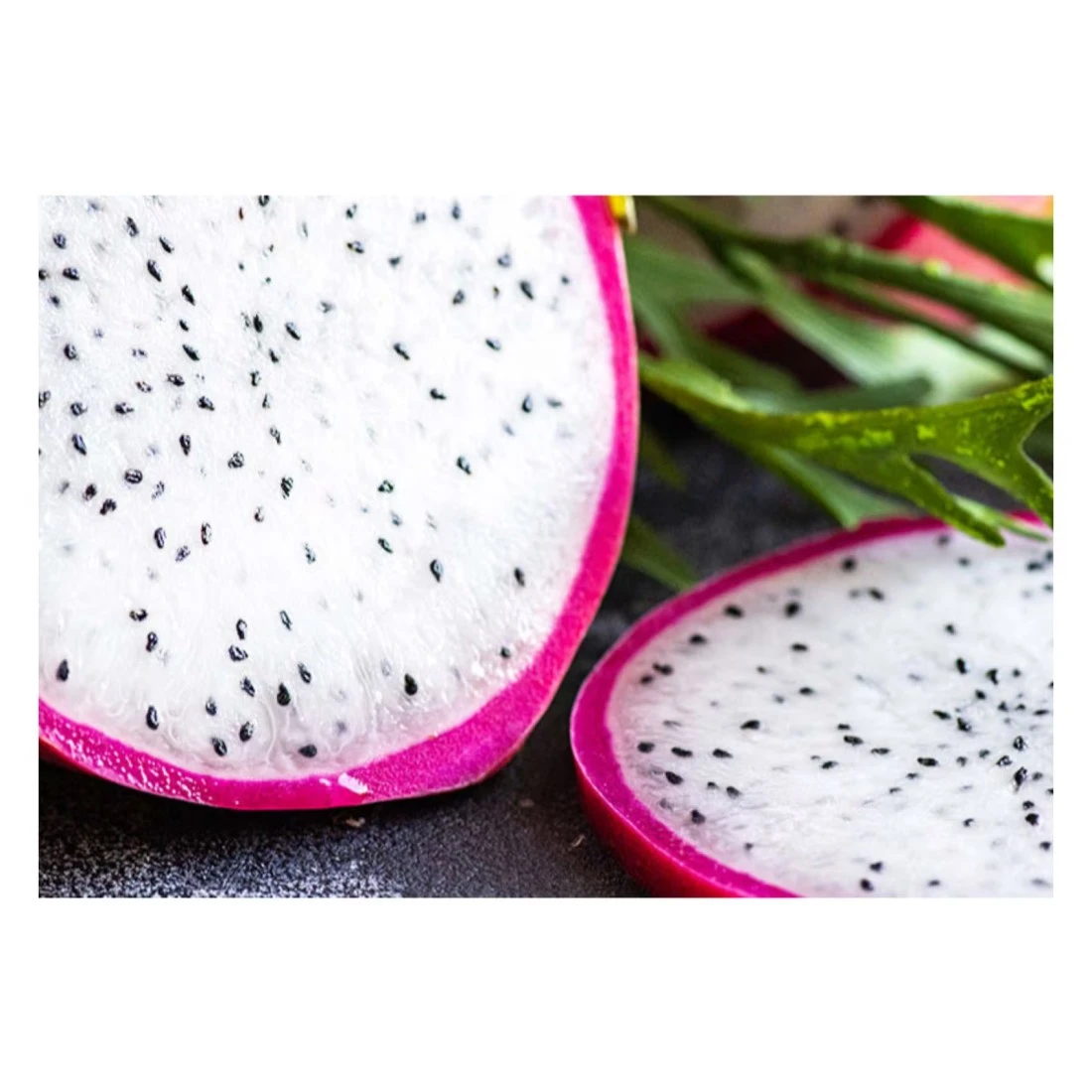 - The flesh is white, juicy and delicious in flavour, with tiny black seeds