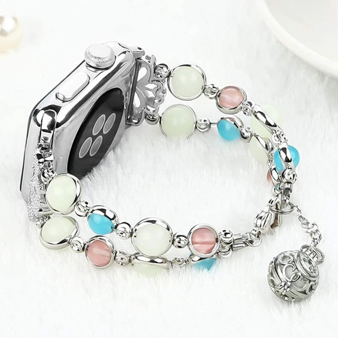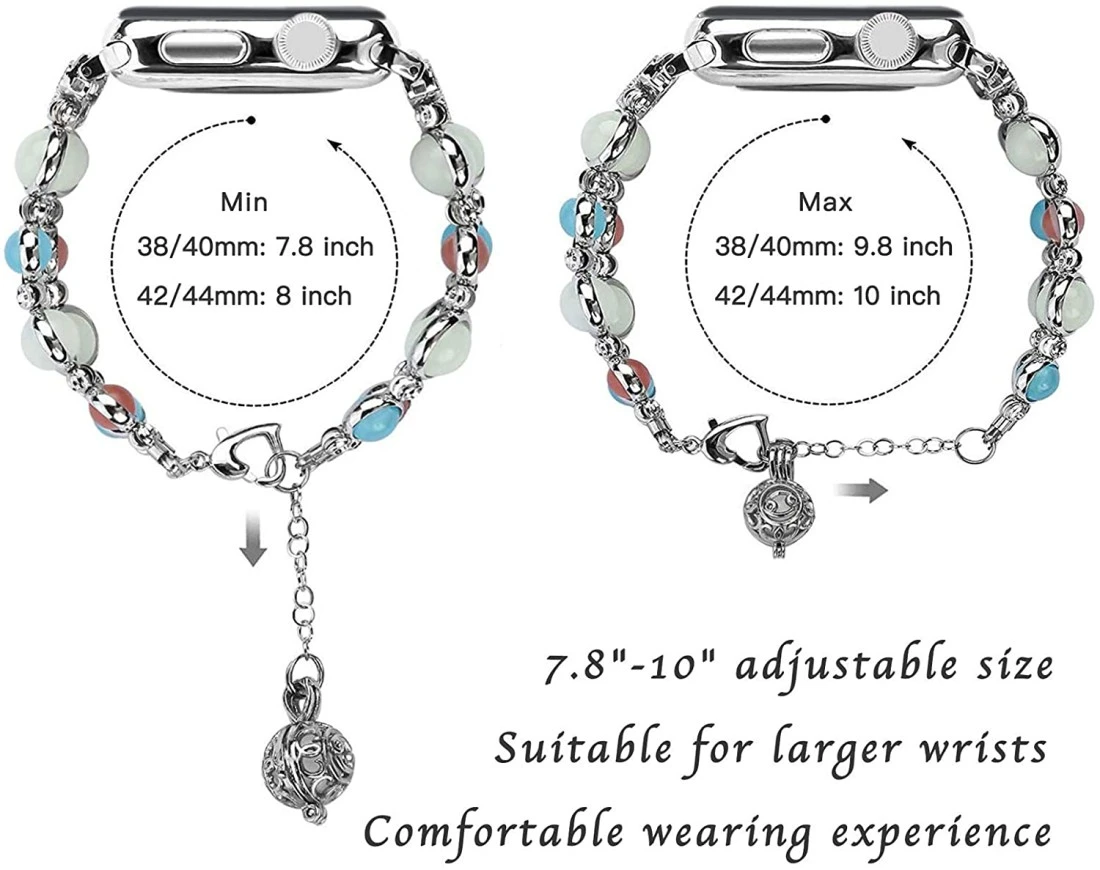 【Luminous Pearl Design】 This night luminous pearl watch band is unique and fashionable compare with other watch bands, It emits a slow glow in a dark environment after light irradiated. In the night, five large luminous beads exude light green and light blue. The wearer will be an alien queen.