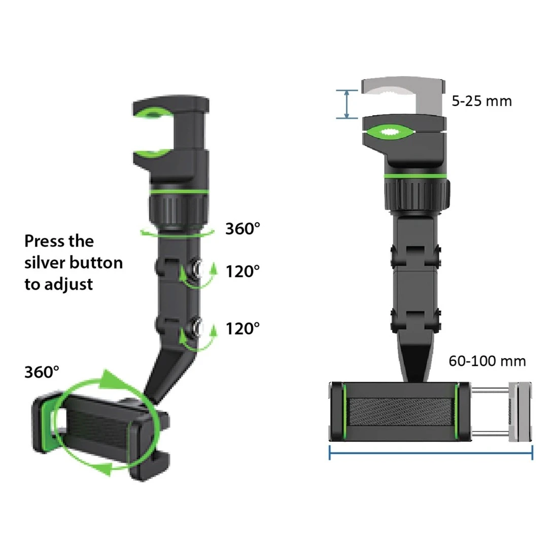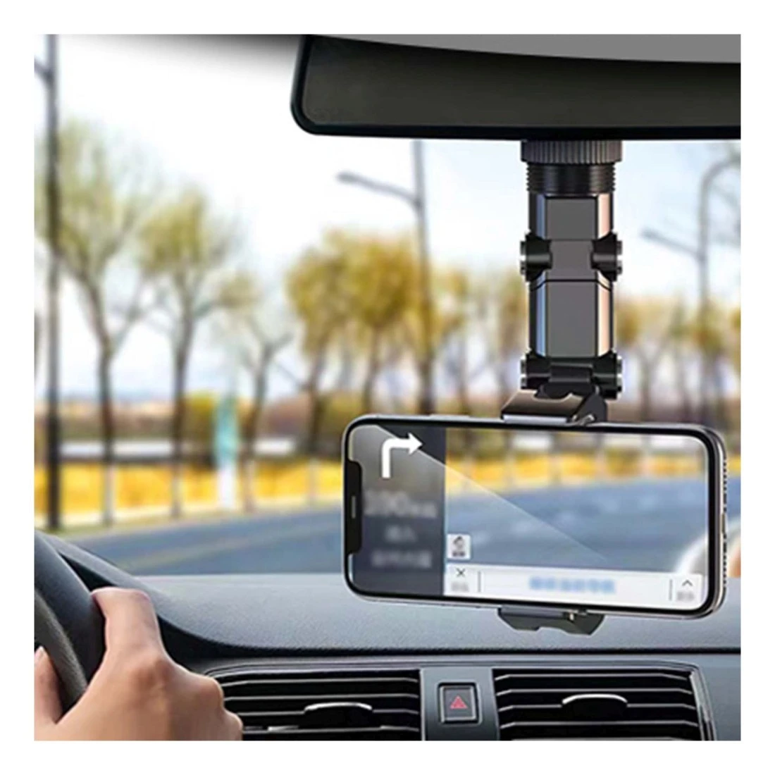 - Adjustable view mirror for easy phone viewing