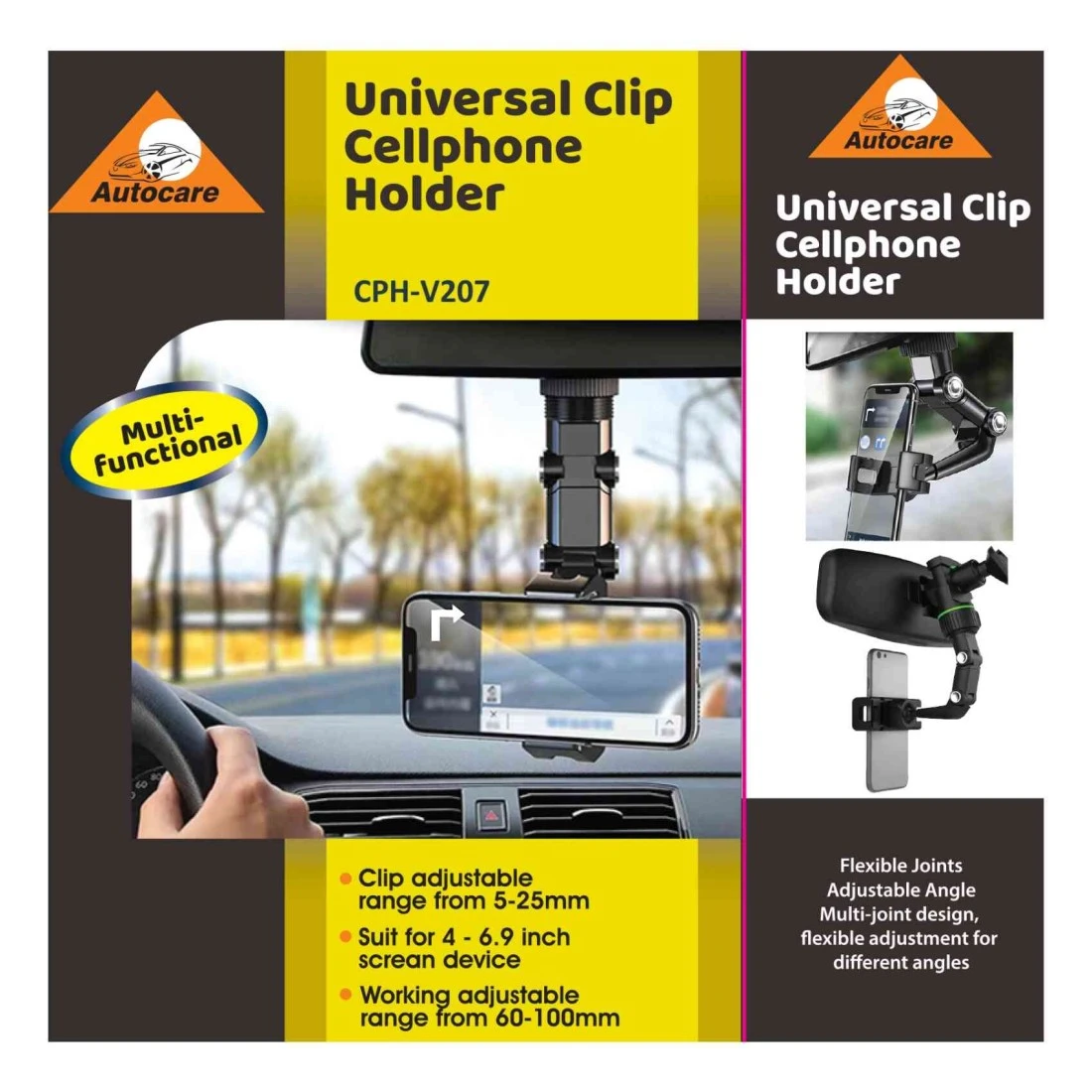 Autocare Adjustable View Mirror Universal Clip Cellphone Holder CPH-V207