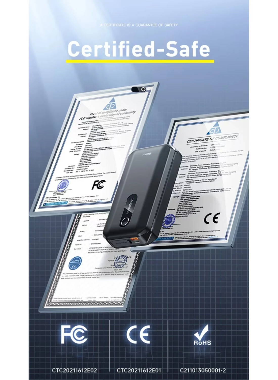 - What's In The Box: 1 * Baseus Super Energy Air Jump Starter / Power Bank, EC5 Smart Ignition Clamp, USB-C charging cable