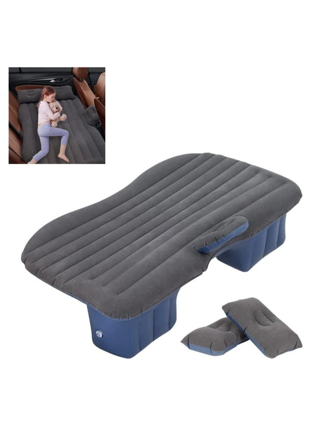 Inflatable Back Seat car Air Mattress Travel Air Bed Cushion with Auto Pump and Two Pillows, Portable Camping Vacation Rest Sleeping Pad Fits Universal SUV Truck Minivan Separable Extended