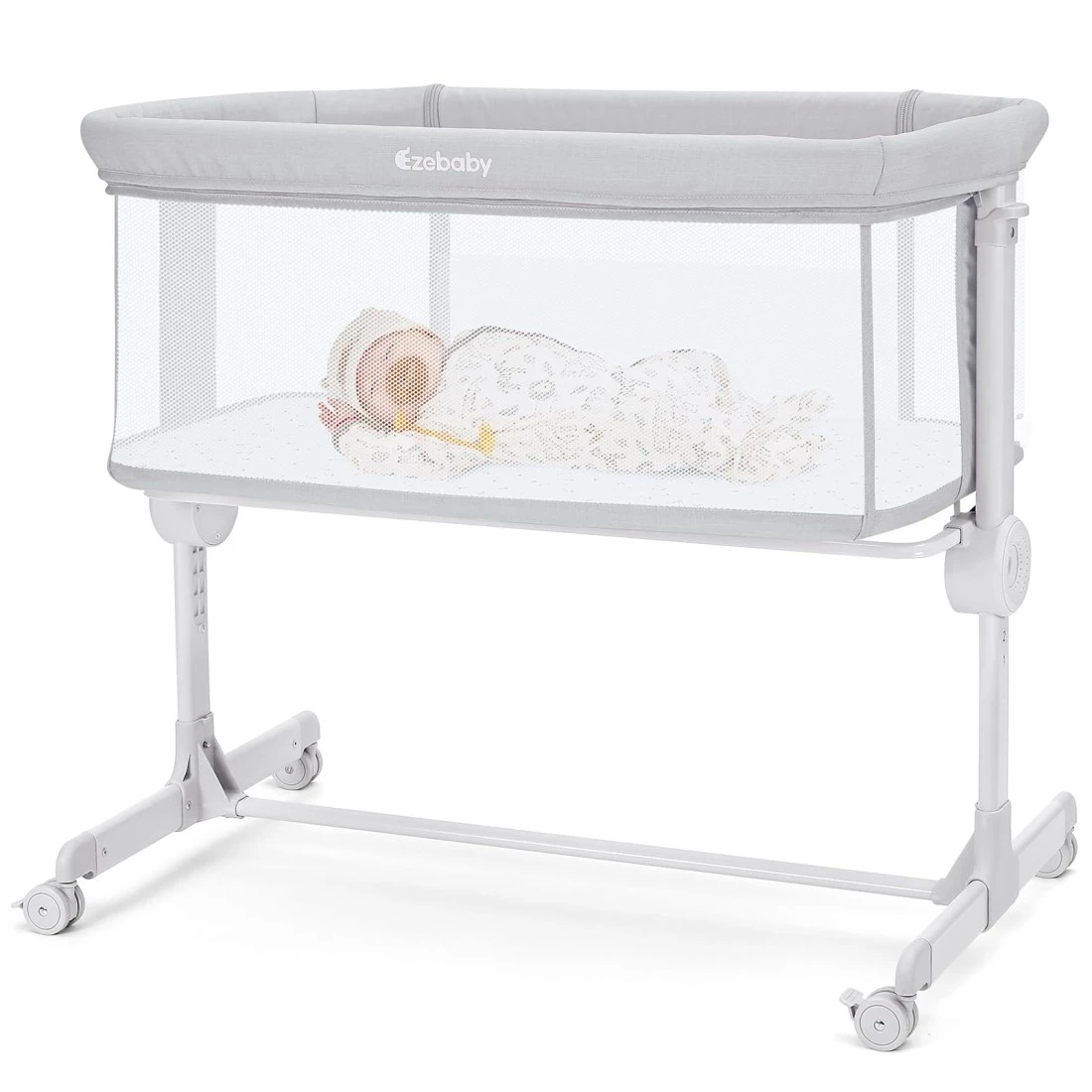 Ezebaby Baby Bassinet, Bedside Bassinet for Baby, Portable Baby Bassinets Bedside Sleeper for Newborn Baby Infants with Adjustable 7 Heights and All Mesh Sides, Mattress & Sheet Included