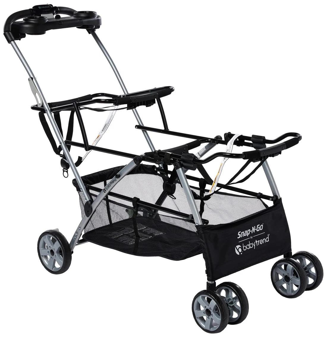 Stroller frame that accepts infant car seats to form a Travel System, Lightweight, sturdy construction, Extra large storage basket, Parent tray with 2 cup holders, Quick and easy compact fold, Front Swivel wheel design, Accepts Baby Trend and most major brands of infant car seats (except Snap Fit or Snap Gear Models)