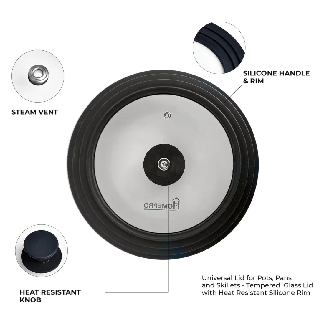 - Versatile Fit: Designed to fit a variety of pots and pans, the HomePro Universal Glass Lid is perfect for 24.9cm cookware, enhancing your kitchen's functionality