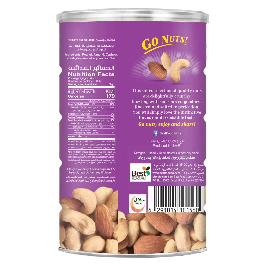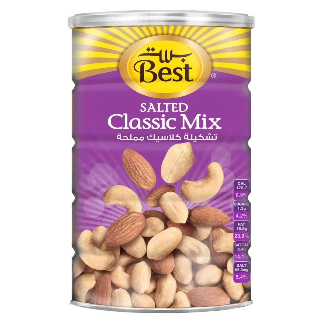 Best Salted Classic Mix is a delicious and healthy snack option made with a perfect combination of salted cashews almonds and peanuts. These nuts are carefully selected and roasted to perfection ensuring a crunchy and savoury taste. Packed with essential nutrients and vitamins these mixed nuts are a great source of protein fiber and healthy fats. Whether you are looking for a quick and nutritious snack or want to add them to your salads trail mixes or baking recipes this Best Salted Classic Mix is sure to satisfy your cravings. With a generous tin pack, you can enjoy the goodness of these nuts for a long time.