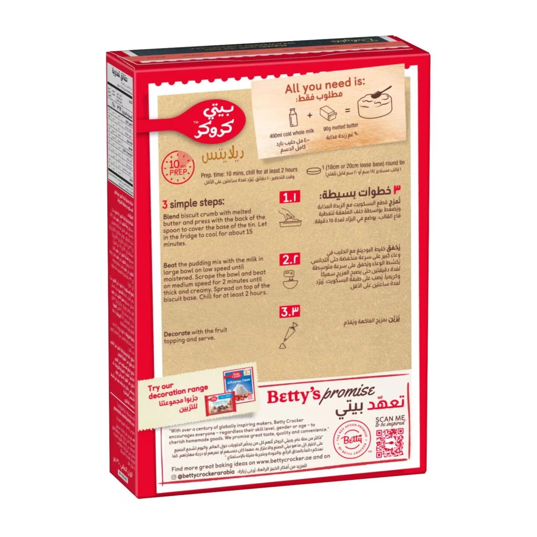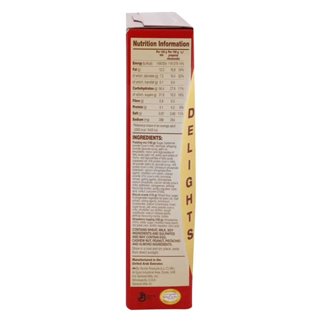 The Betty Crocker Strawberry Cheesecake is a delicious dessert that combines the creamy richness of cheesecake with the refreshing taste of strawberries. This 360g pre-packaged dessert mix makes it easy to whip up a homemade-style cheesecake in no time. Simply add water butter and cream cheese to the mix bake it in the oven and top it off with the included strawberry topping. The result is a smooth velvety cheesecake with a sweet and tangy strawberry flavour. Perfect for parties family gatherings or even as a special treat for yourself.