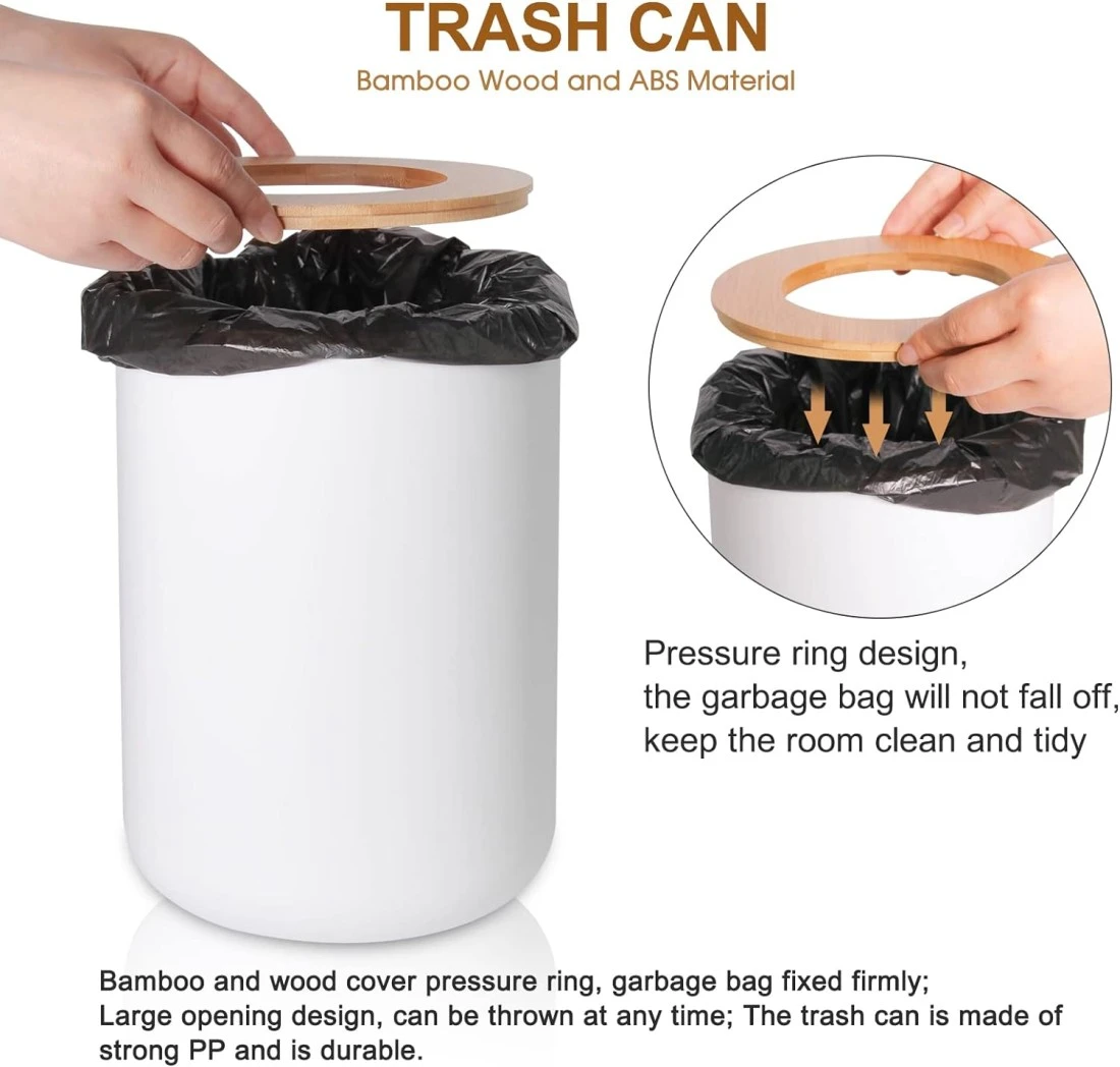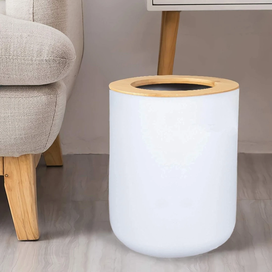 White Waste Bin With Bamboo Lid
