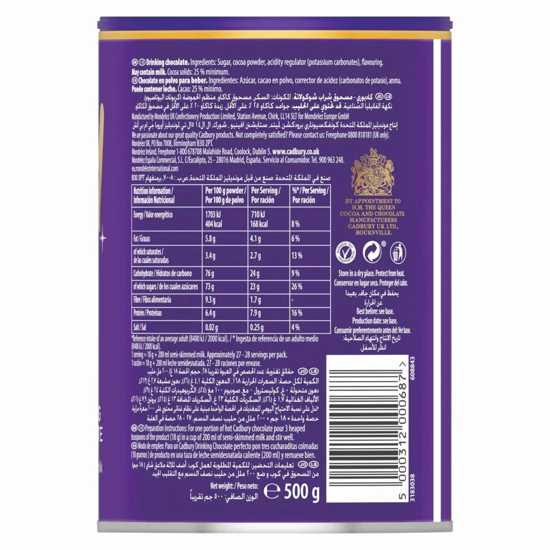 Cadbury Original Drinking Hot Chocolate, 500g
