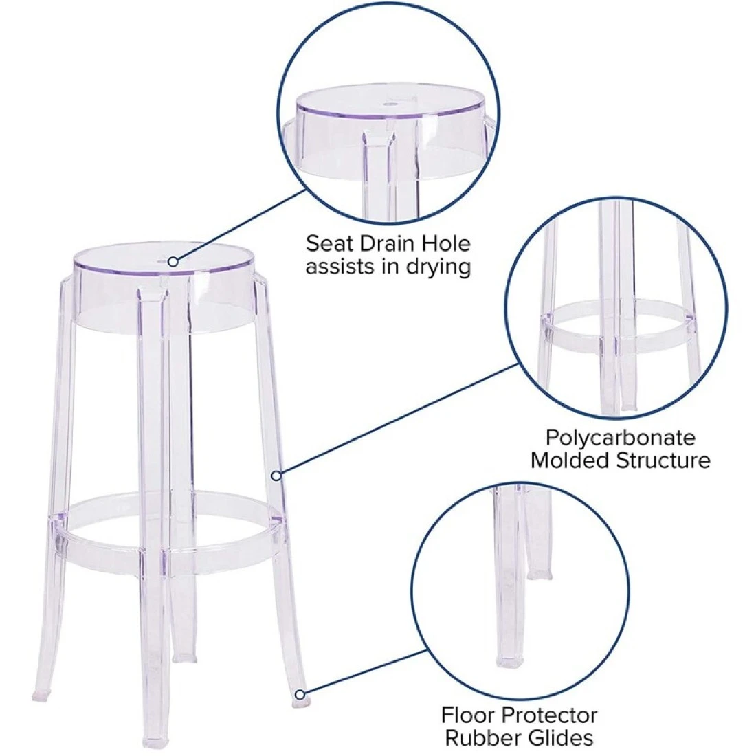 INDOOR/OUTDOOR USE - Popularly bought for outdoor patio or backyard events, the clear bar stool enhances the dining experience both inside and out.