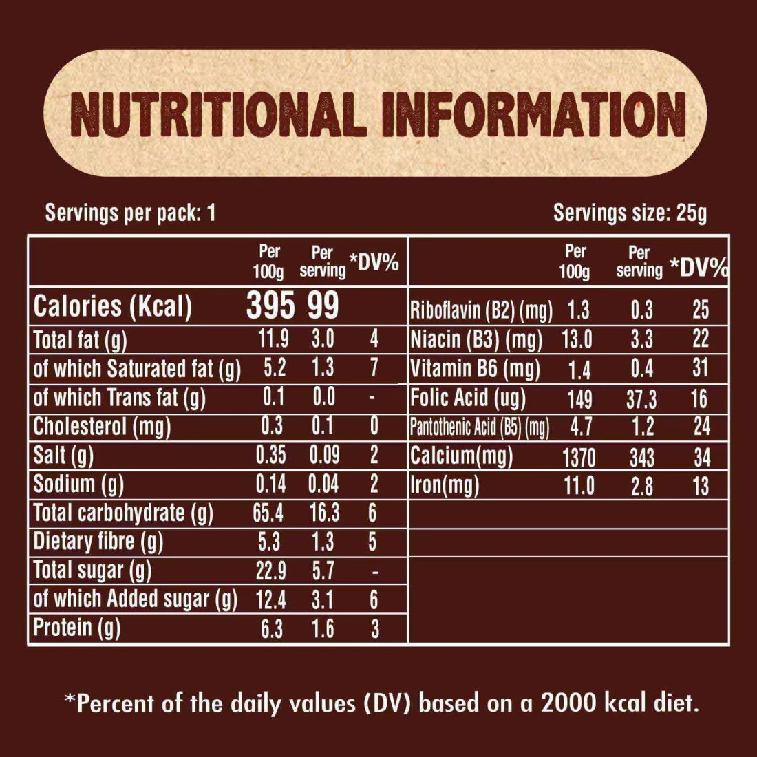 - Each 25g bar is packed with essential vitamins and minerals, providing a nutritious snack option