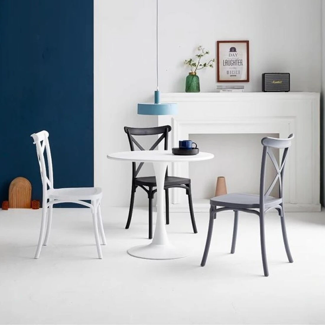 Jeffcoco Furniture stackable chair Injection processing Fixed leg plastic leisure chair outdoor/indoor outside/inside Patio/Garden chair Water/sun proof Dining chair (black 1pc)
