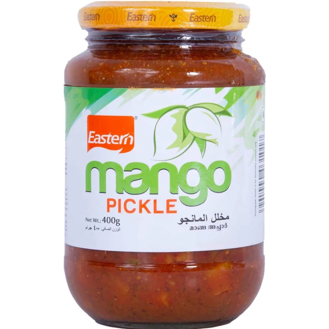 Eastern Mango Pickle is a delicious and tangy condiment made from high-quality mangoes blended with a special mix of spices and traditional Indian seasonings. This 400g jar of pickle is packed with the authentic flavours of Eastern India offering a perfect balance of heat sweetness and sourness. It can be enjoyed with meals as a side dish or used as a flavour enhancer in various dishes like curries rice or sandwiches. The Eastern Mango Pickle is known for its irresistible taste and can be a great addition to any meal for those who love spicy and zesty flavours.