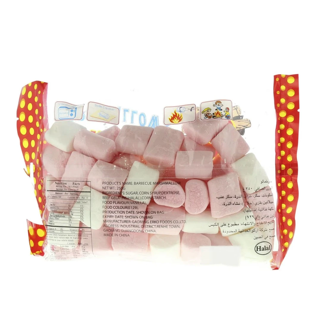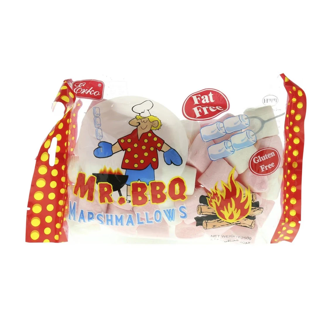 Erko Mr. BBQ Fat-Free Marshmallow is a delicious and guilt-free treat for all marshmallow lovers. Each 250g pack contains soft and fluffy marshmallows that are completely fat-free making them a healthier option compared to traditional marshmallows. They are perfect for roasting over a campfire adding to hot chocolate or making s'mores. Whether you're watching your waistline or simply looking for a healthier alternative Erko Mr. BBQ Fat-Free Marshmallows are a tasty and satisfying choice.