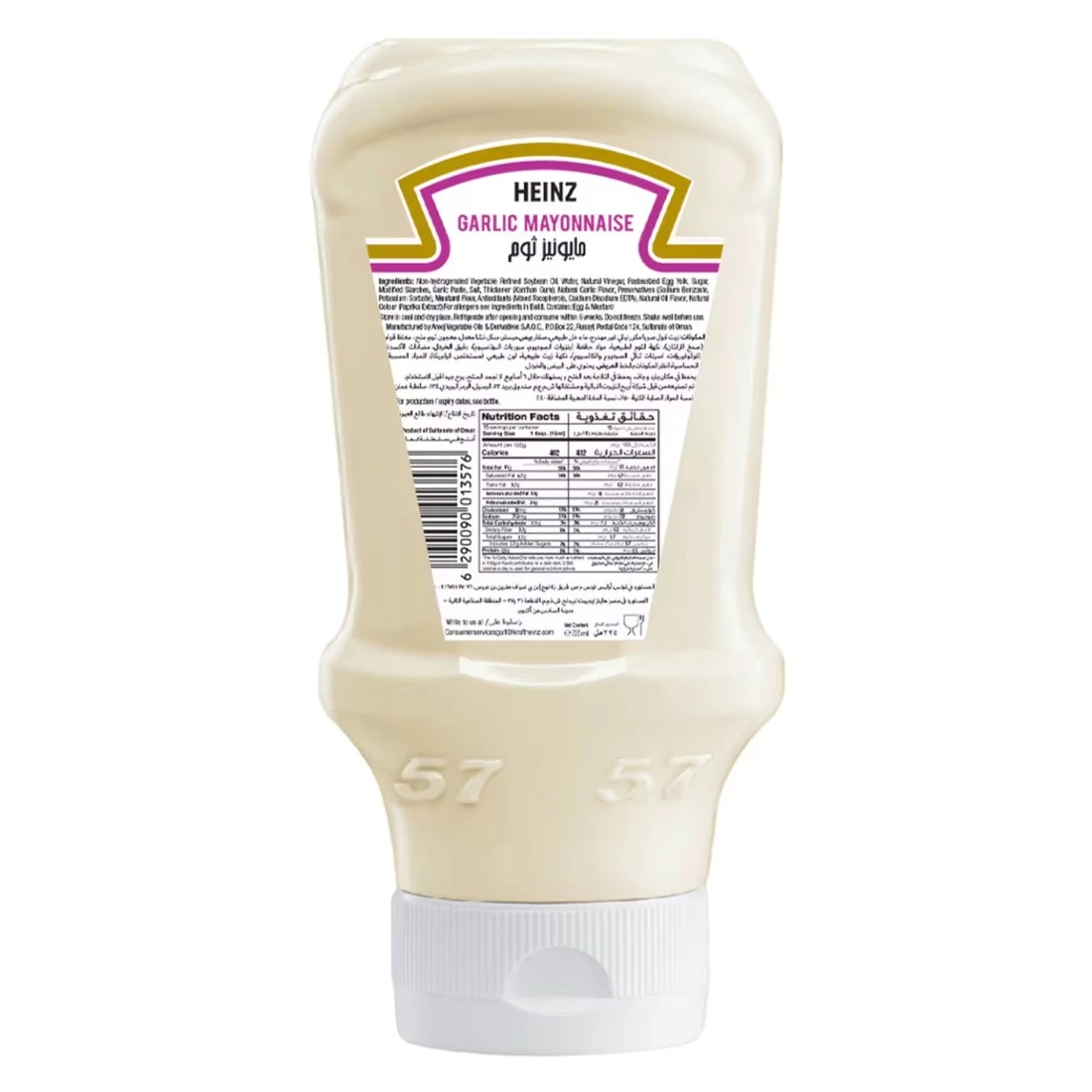 Heinz Mayonnaise Garlic Top Down Squeezy Bottle 225ml is a creamy and flavour-packed mayonnaise that is infused with garlic to add a delicious twist to your dishes. The top-down squeezy bottle allows for easy and mess-free dispensing making it perfect for spreading on sandwiches and burgers or using as a dip for fries and vegetables. This 225ml bottle is the perfect size for individuals or small households who enjoy the rich flavour of garlic in their mayonnaise.