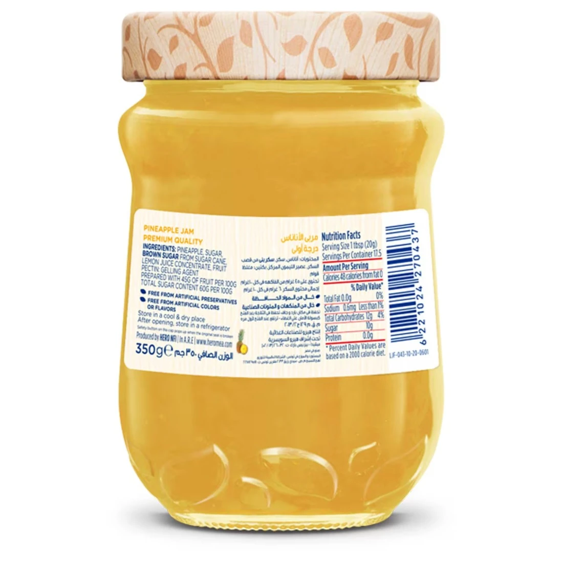 Hero Pineapple Jam is a classic timeless product that has been enjoyed by families for generations. Its delicious taste comes from select fruits that have been grown in tropical locations and preserved in sugar for that ideal sweetness. Its 350g jar provides the perfect sweetness and is perfect for breakfast and baking.