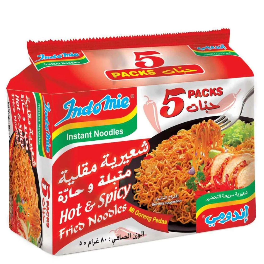 Indomie Hot and Spicy with Seasoning Powder and Sauce Instant Fried Noodles, 80g Pack of 5
