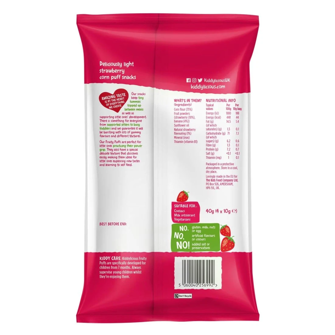 Kiddylicious Gluten-Free Strawberry Fruity Puffs 40g