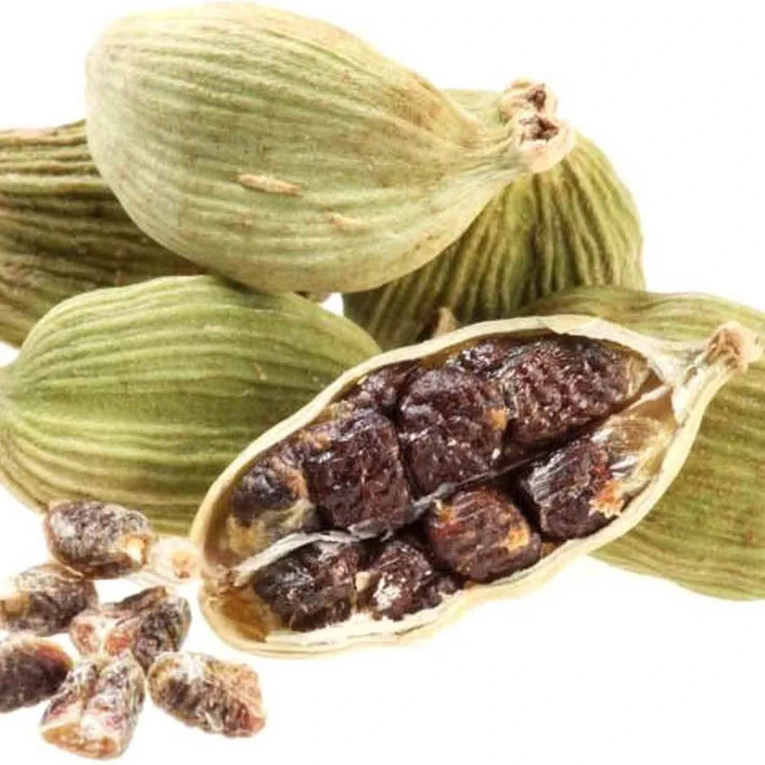 - Green cardamom is s whole pods ground and seeds alone.