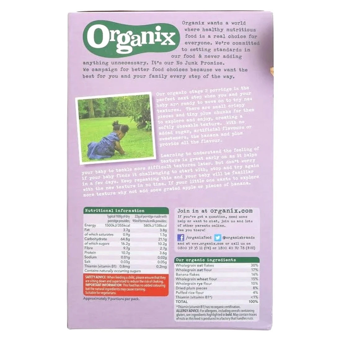ingredients : Wholegrain Oat Flakes, Wholegrain Oat Flour, Banana Flakes, Wholegrain Wheat Flour, Wholegrain Rye Flour, Dried Plum Pieces, Puffed Rice Flour, Thiamine (Vitamin B1)