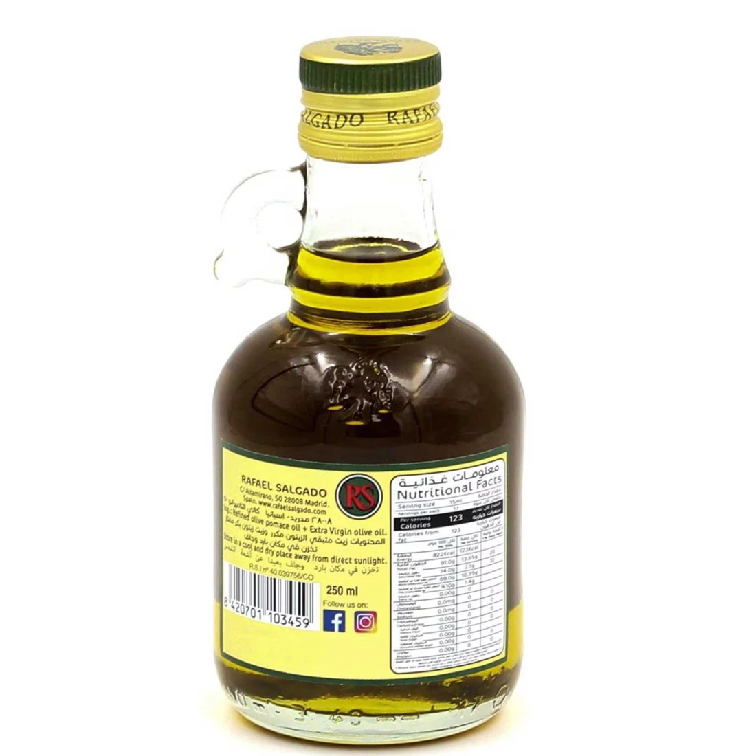 Rafael Salgado Olive Pomace Oil is a high-quality olive oil made from the residue (pomace) left after pressing olives for their extra virgin oil. This oil is extracted using a blend of refined olive pomace oil and extra virgin olive oil, resulting in a versatile cooking oil with a mild flavour. It is a great choice for sautéing, frying, and baking, as it has a high smoke point and a neutral taste that won't overpower the flavours of your dishes. The 250ml size is perfect for home cooks who want to experience the benefits of olive pomace oil without committing to a larger bottle.