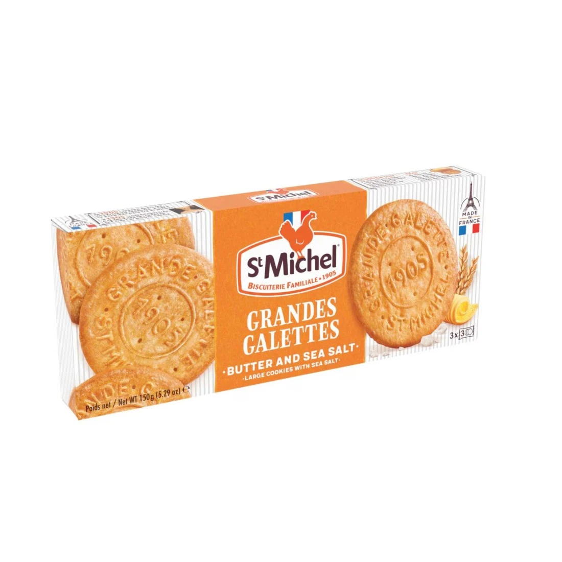 Indulge in the rich and buttery flavours of St Michel 9 Grandes Galettes Butter Cookies. These delightful treats are made with the finest ingredients and sprinkled with a touch of sea salt for the perfect balance of sweet and savoury. Enjoy these crispy and melt-in-your-mouth cookies with your favourite hot beverage or as a delicious snack on their own. Each box contains 150g of these delectable French cookies making them perfect for sharing or savouring all to yourself. Treat yourself to the irresistible taste of St Michel 9 Grandes Galettes Butter Cookies today!