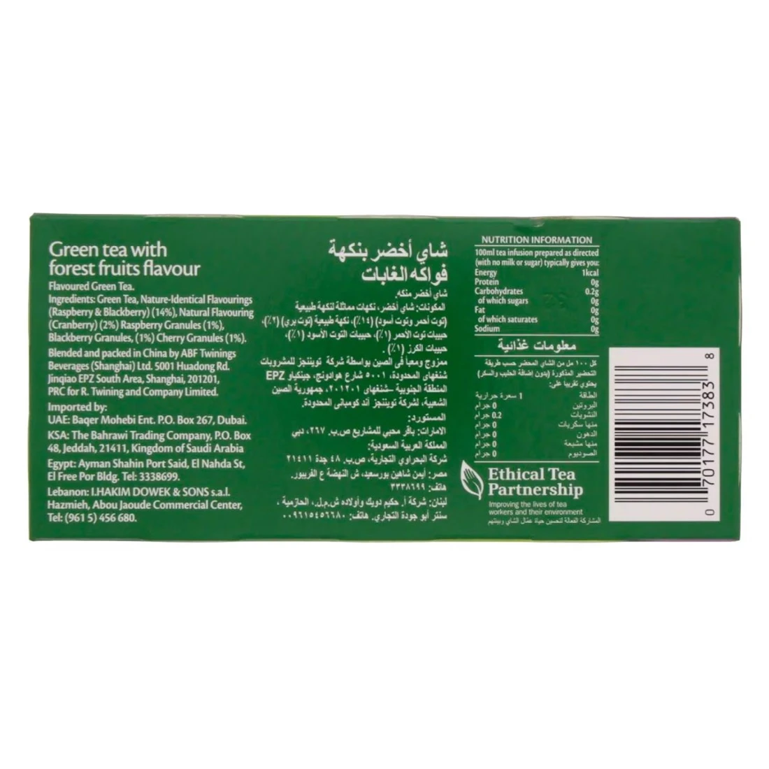 - This product contains a delightful blend of green tea and forest fruits
