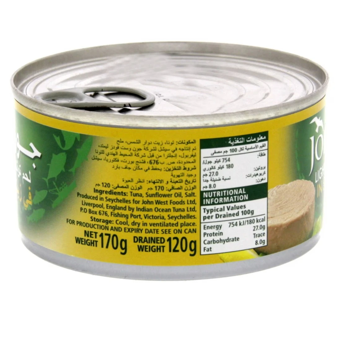 John West Light Meat Tuna Solid In Sunflower Oil is a high-quality canned tuna product. It consists of solid pieces of light tuna meat packed in sunflower oil creating a delicious and flavourful combination. This tuna is a healthy source of protein and omega-3 fatty acids making it a nutritious addition to any diet. The convenient 170g can size makes it perfect for on-the-go meals or quick snacks. Whether you enjoy it on its own in a salad or a sandwich John West Light Meat Tuna Solid In Sunflower Oil offers a tasty and convenient option for tuna lovers.