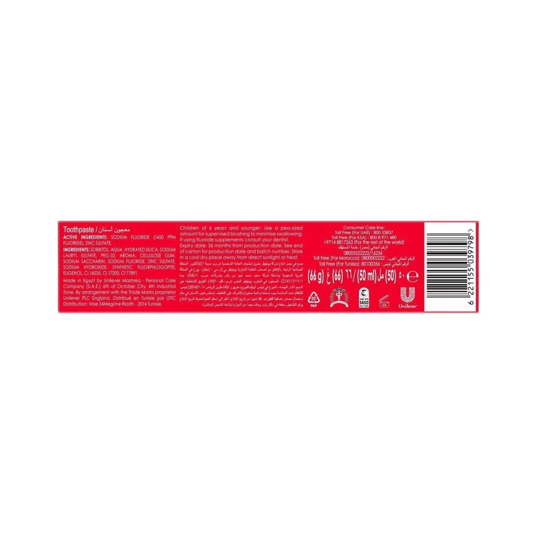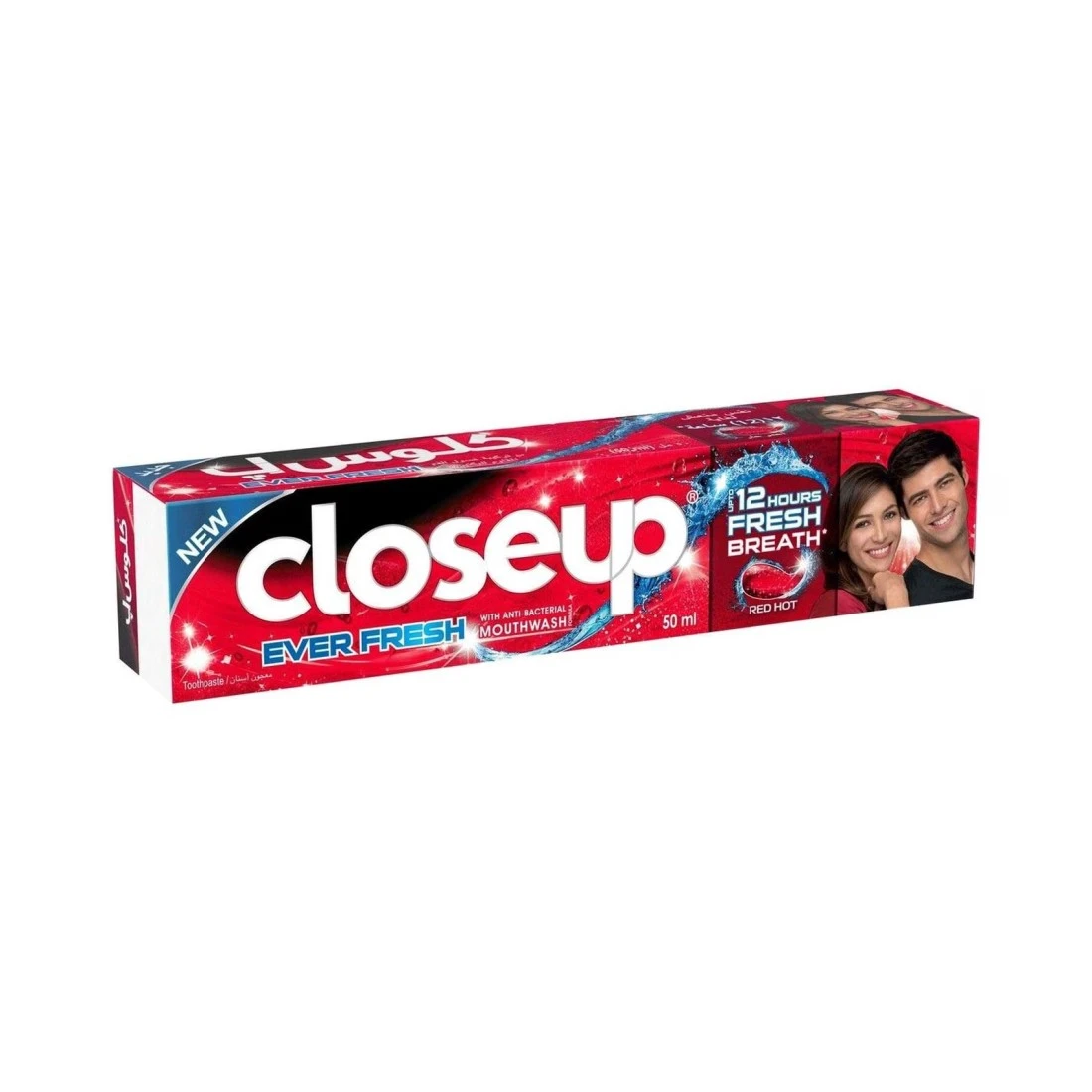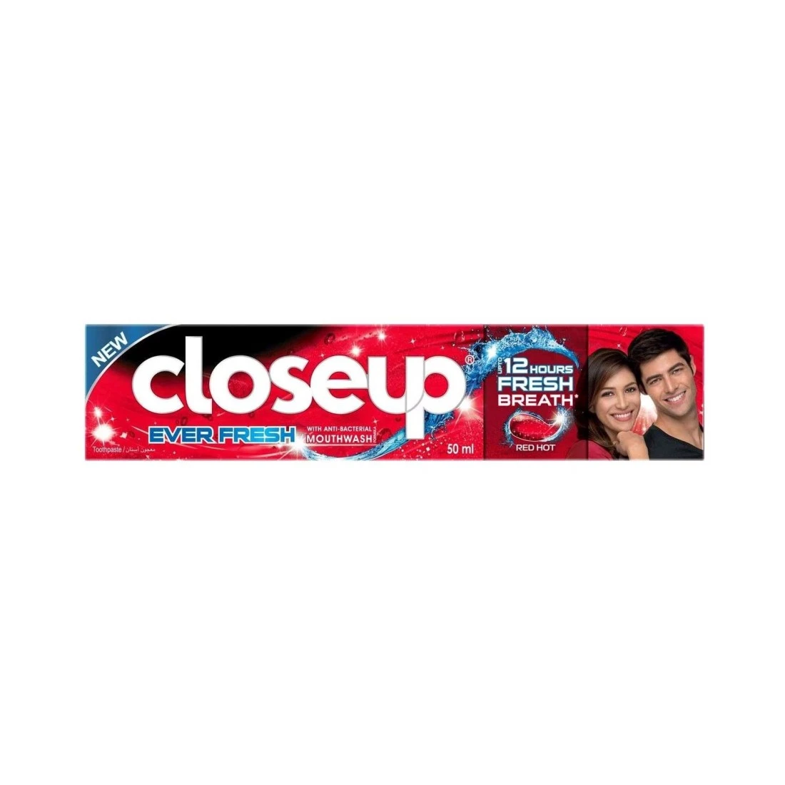 Closeup Triple Fresh Formula Gel Toothpaste Red Hot 50ml is a powerful toothpaste that provides a refreshing and long-lasting cooling sensation. Its unique formula not only cleans and protects your teeth but also freshens your breath and fights against bad breath-causing bacteria. With its red hot flavour, this toothpaste gives you a unique and exhilarating brushing experience. Its compact 50ml size makes it perfect for travel or on-the-go use.