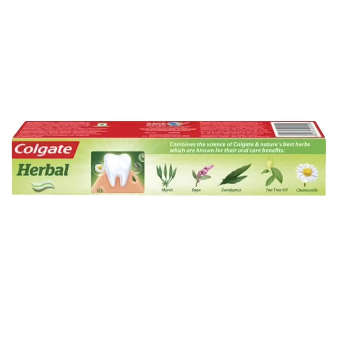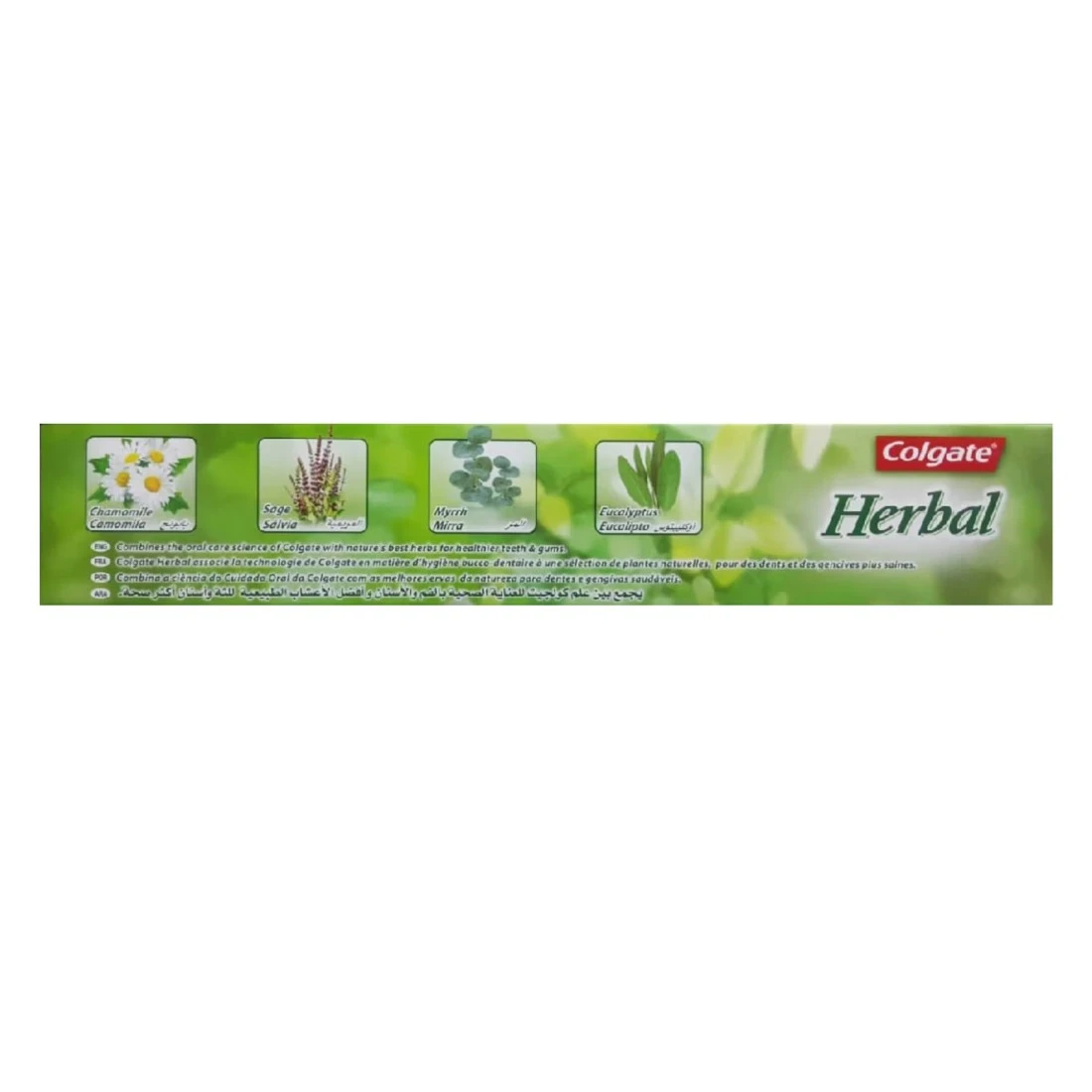 Embrace the power of nature with Colgate Herbal Toothpaste. This fluoride toothpaste combines Colgate's oral care science with nature's best herbs, including chamomile, sage, myrrh, and eucalyptus. It is designed to provide strong teeth and healthy gums while delivering a refreshing herbal flavor. Perfect for daily use, it helps to prevent cavities and promotes overall oral health. Enjoy the unique blend of natural ingredients for a healthier, more natural smile