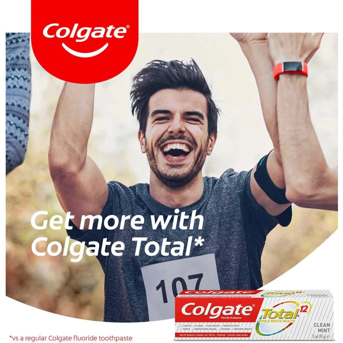 Achieve a healthier, cleaner mouth with Colgate Total Clean Mint Toothpaste. This advanced fluoride toothpaste provides 12-hour germ protection* for your entire mouth, including teeth, tongue, cheeks, and gums. Enriched with ingredients like zinc and arginine, it helps reduce plaque, promote healthy gums, strengthen enamel, prevent tartar, relieve sensitivity, whiten teeth, and freshen breath. Enjoy the refreshing clean mint flavor and comprehensive oral care with Colgate Total Clean Mint.