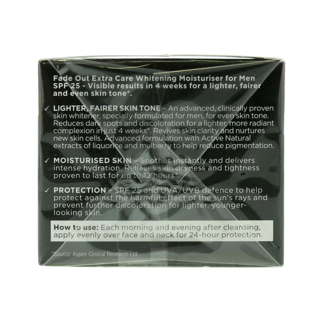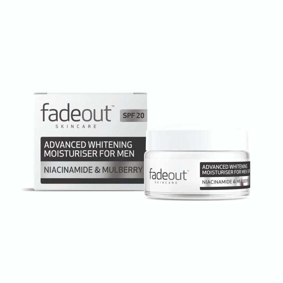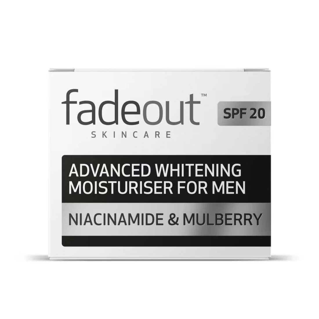- Fade Out Advanced Brightening Moisturiser for men is formulated to even out skin tone and reduce dark spots and discolouration for an even skin tone and brighter complexion by exfoliating the top layer of skin