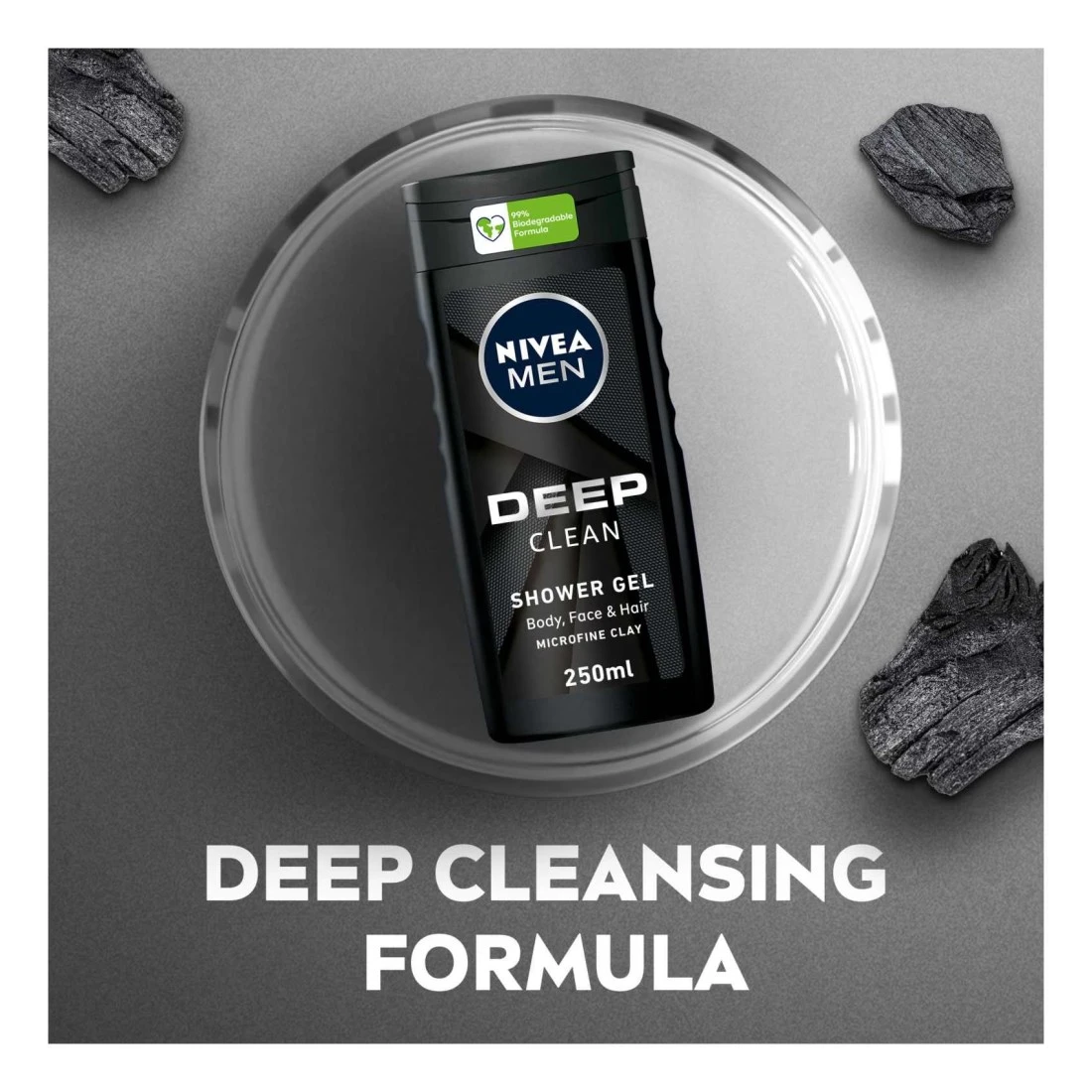NIVEA MEN 3in1 Shower Gel Body Wash DEEP Micro-Fine Clay Woody Scent 250ml