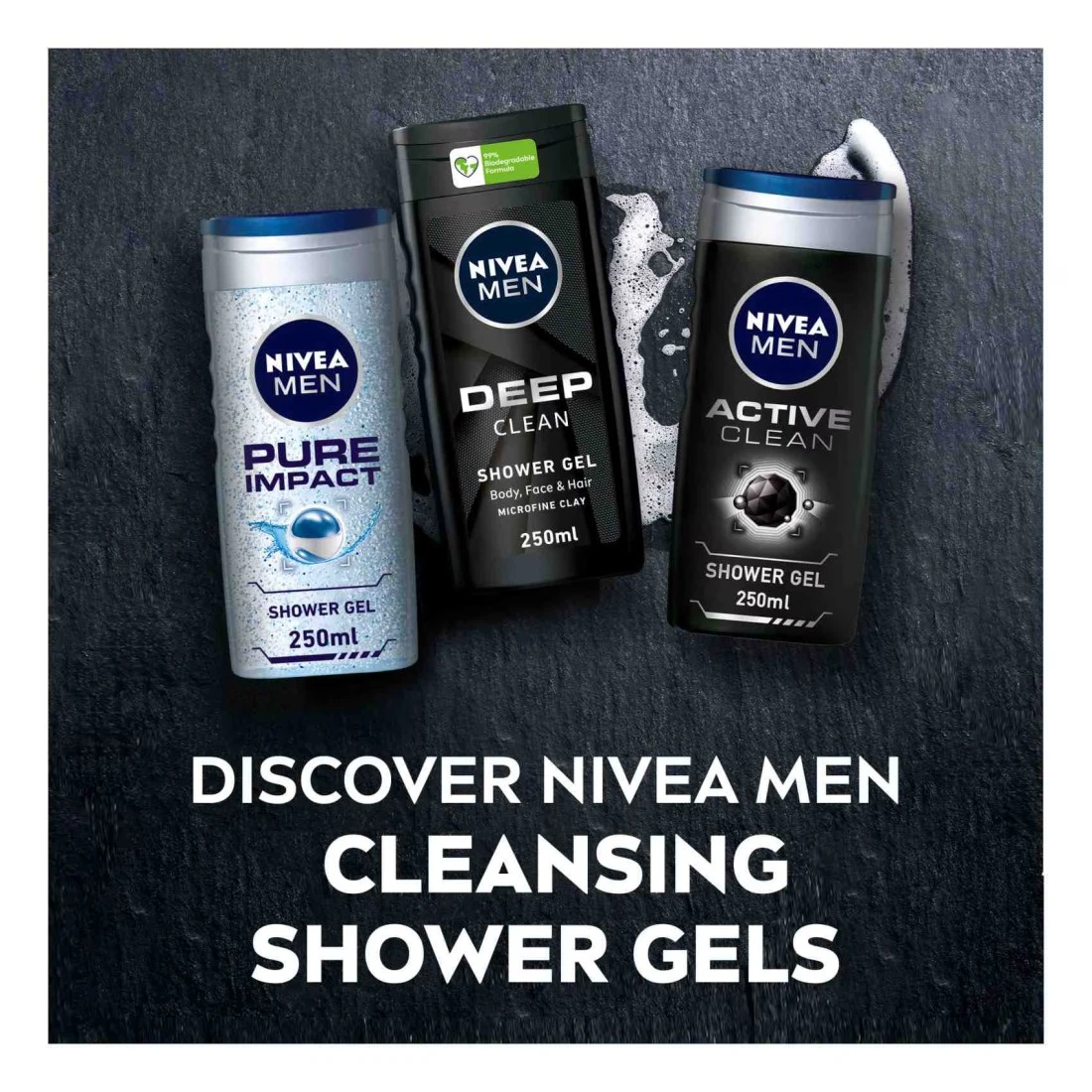 NIVEA MEN DEEP Shower Gel is an innovative, mild formula made specially for men with an active lifestyle, who want a deeply cleansing and long-lasting fresh after-shower feeling.Infused with a sensual, dark woody fragrance, NIVEA MEN Deep Shower Gel contains naturally-derived micro-fine clay that absorbs dirt and impurities to effectively cleans your skin and hair deeply, leaving it feeling refreshed and cared for.NIVEA MEN DEEP Shower Gel is pH skin balanced, dermatologically approved and suitable for use on the face, body and hair.It’s no secret that fragrances can strongly affect our mood. That’s why at NIVEA, we carefully select fragrances that complement our body cleansing products, and why there is such a large variety of fragrances you can choose from – from fruity and floral, to citrusy and marine. If you’re looking to be wakened up during your morning shower, we offer exhilarating scents like lemongrass and moringa to give you a burst of freshness. Want something to calm you down in the evening before bed? Aromas like cocoa and honey will soothe your senses for the ultimate relaxation. If a mild, fresh scent is what you’re after, we also have cotton and aquatic scents. Basically, if you’re looking for a fragrance to put you in a certain mood during your shower, we’ll have it in our vast lineup of body cleansing products.NIVEA MEN, it starts with you!