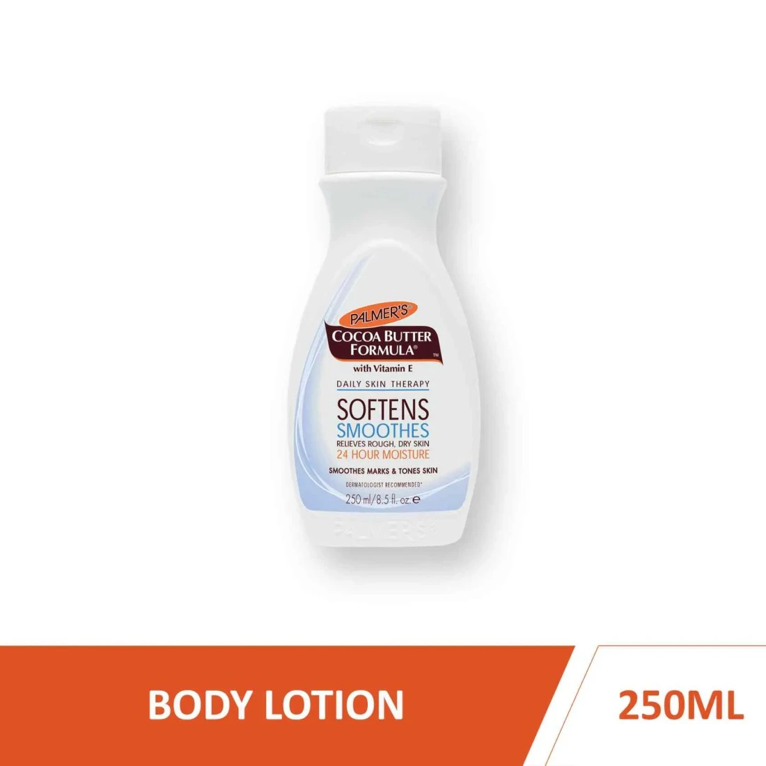 Palmer's Cocoa Butter Body Lotion is a rich and creamy formula that helps to moisturize and nourish the skin. It is enriched with cocoa butter which is known for its deep hydration properties as well as vitamin E to help improve the appearance of scars and stretch marks. This body lotion absorbs quickly into the skin leaving it feeling soft and smooth. It is suitable for all skin types and can be used daily for long-lasting hydration.