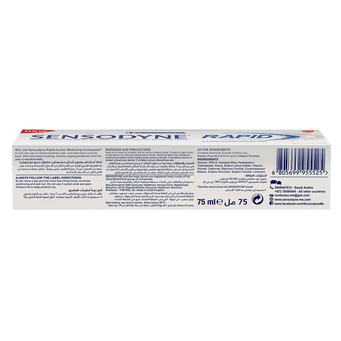 Sensodyne Rapid Action Whitening for Fast Relief 75ml