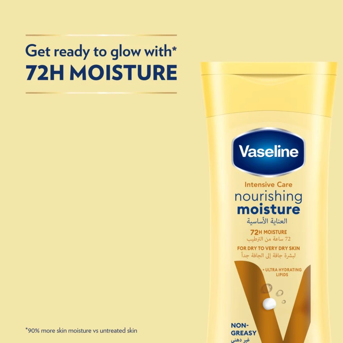 - Vaseline Intensive Care Nourishing Moisture body lotion moisturises dry and very dry skin.