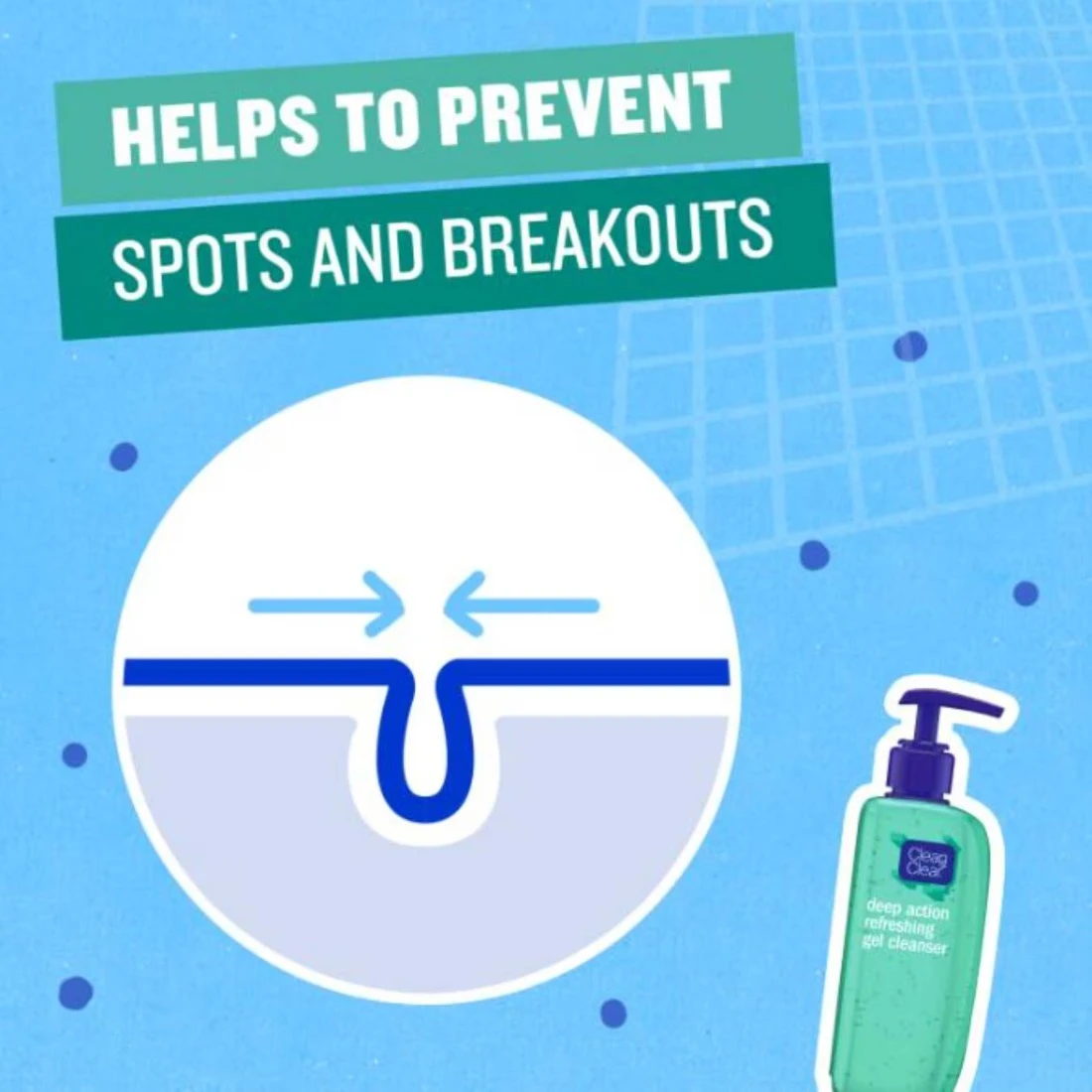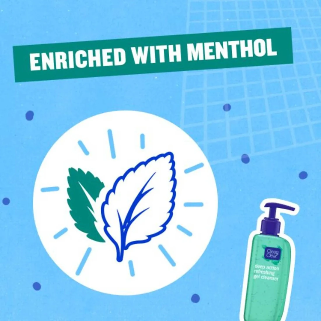Clean & Clear Deep Action Refreshing Gel Cleanser is an oil-free, foamy icy gel wash that is specially formulated to cleanse deep down in to the pores to help prevent spots and breakouts. Clean & Clear Deep Action Refreshing Gel Cleanser gently and effectively removes dirt, oil, impurities and makeup in one easy step, all without over-drying your skin. It is enriched with menthol that instantly cools and invigorates your skin, leaving it clear, refreshed and thoroughly cleansed.Use Clean & Clear Deep Action Refreshing Gel Cleanser every day for bright, beautiful and clear skin!