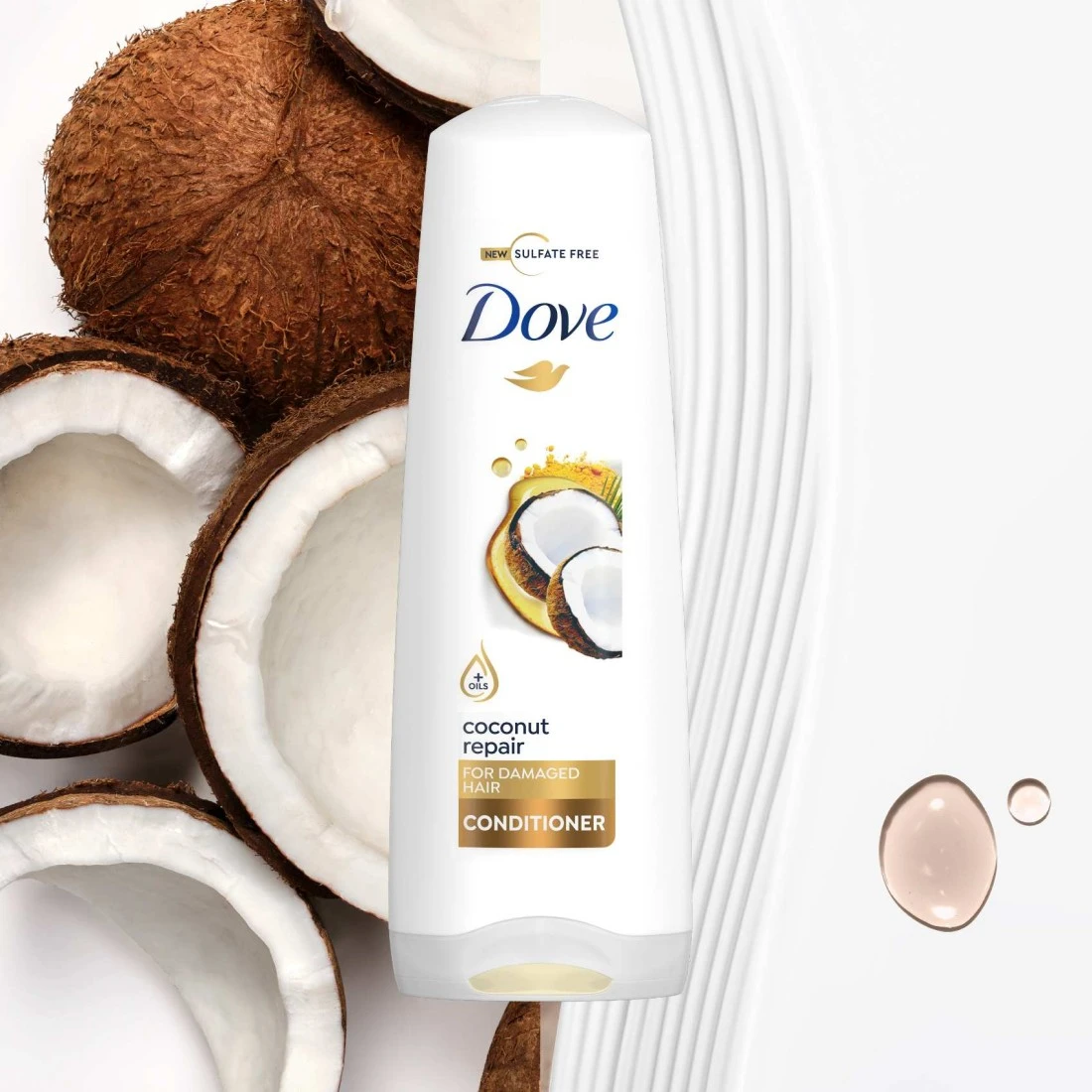 - Dove Conditioner with Coconut Oil and Turmeric helps to restore your hair to health and helps your hair repair signs of damage*, leaving your hair looking and feeling naturally beautiful.