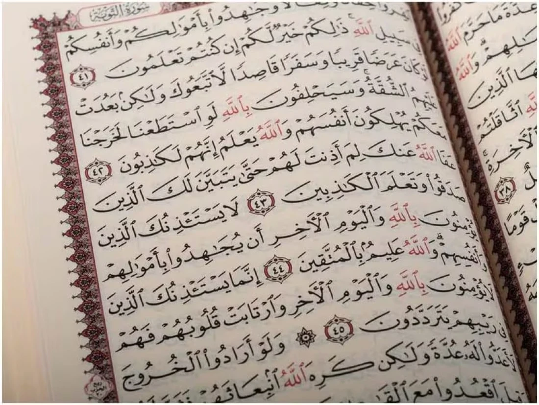 Holy Quran, 99 beautiful names of Allah, Arabic, Ottoman office, medium, size 20*14, red color