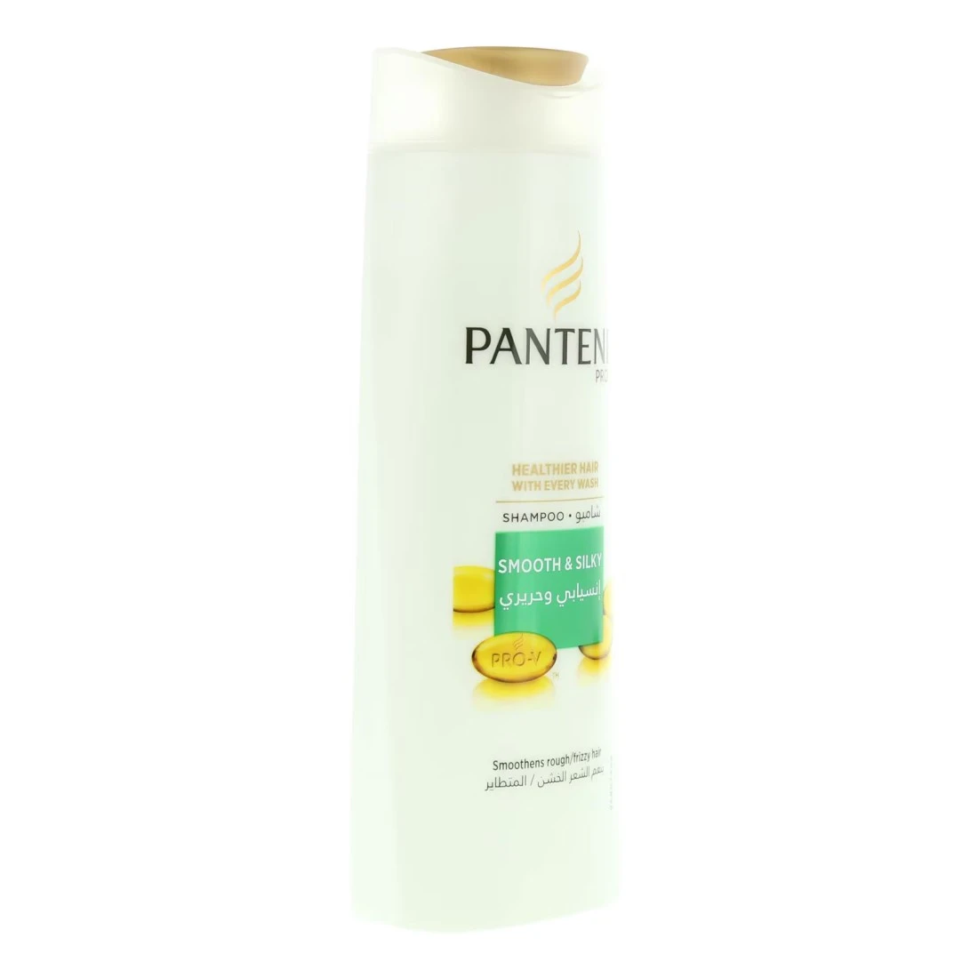 Styling damage can lead to loss of moisture in hair. This often results in frizzy, unruly hair. Use Pantene Pro-V Smooth and Silky Shampoo – especially crafted to smoothen rough, unruly and frizzy hair into nourished locks and deliver thicker and stronger hair in 14 days*.Harnessing the power of Pantene’s pro-vitamins formula, this smooth and silky shampoo thoroughly washes away dirt and impurities and provides intense moisturization by nourishing even the roughest hair strands. The result? Visibly frizz-free hair. With regular use, see your hair transform from frizzy, unruly strands to nourished and silky-smooth hair.Also use Pantene Pro-V Smooth and Silky Oil Replacement Leave-On Cream for deeper nourishment and heat protection up to 230°c. Shop the entire range of Pantene’s Smooth and Silky hair care routine – 1) Shampoo 2) Conditioner 3) Oil Replacement Leave-On Cream 4) Nourishing Mask 5) 3-Minute Miracle Conditioner. Also explore Pantene’s other hair care collections to address specific hair concerns – 1) Goodbye Frizz 2) Anti-Hair Fall 3) Milky Damage Repair 4) Smooth and Silky 5) Daily Care, and more. *strength against styling damage vs non-conditioning shampoo