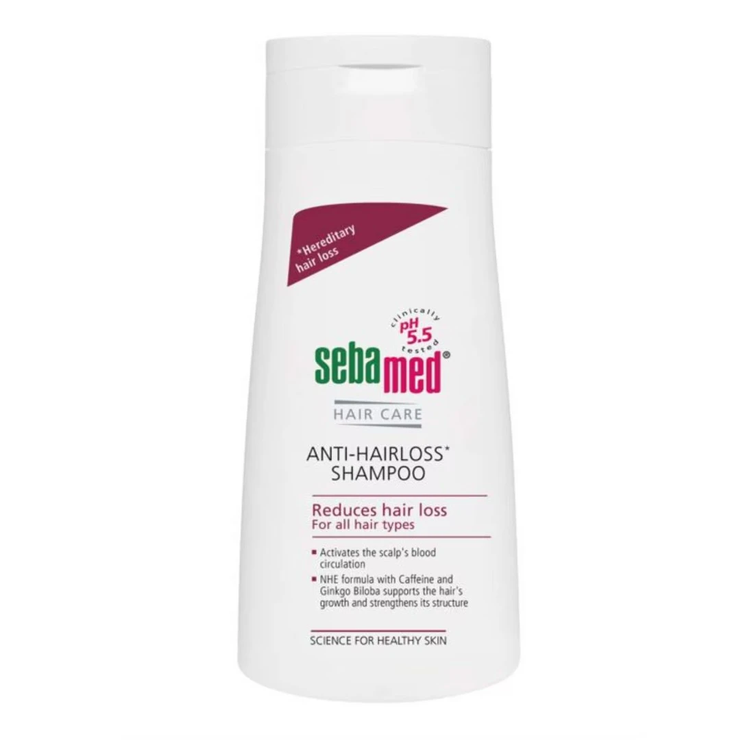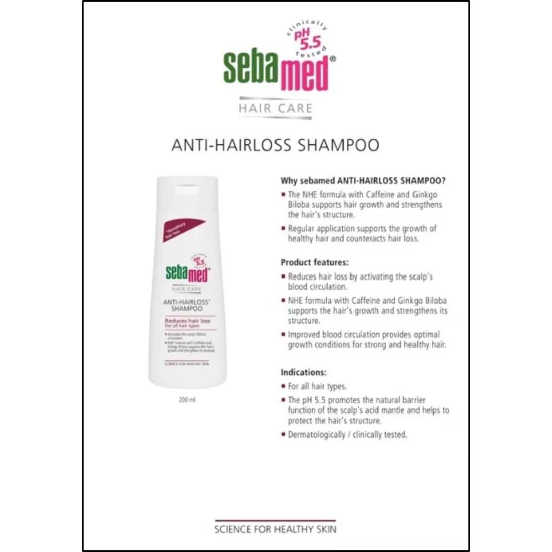- With the aid of piroctone olamine the Sebamed Anti-Hairloss Shampoo formula battles dandruff formation.