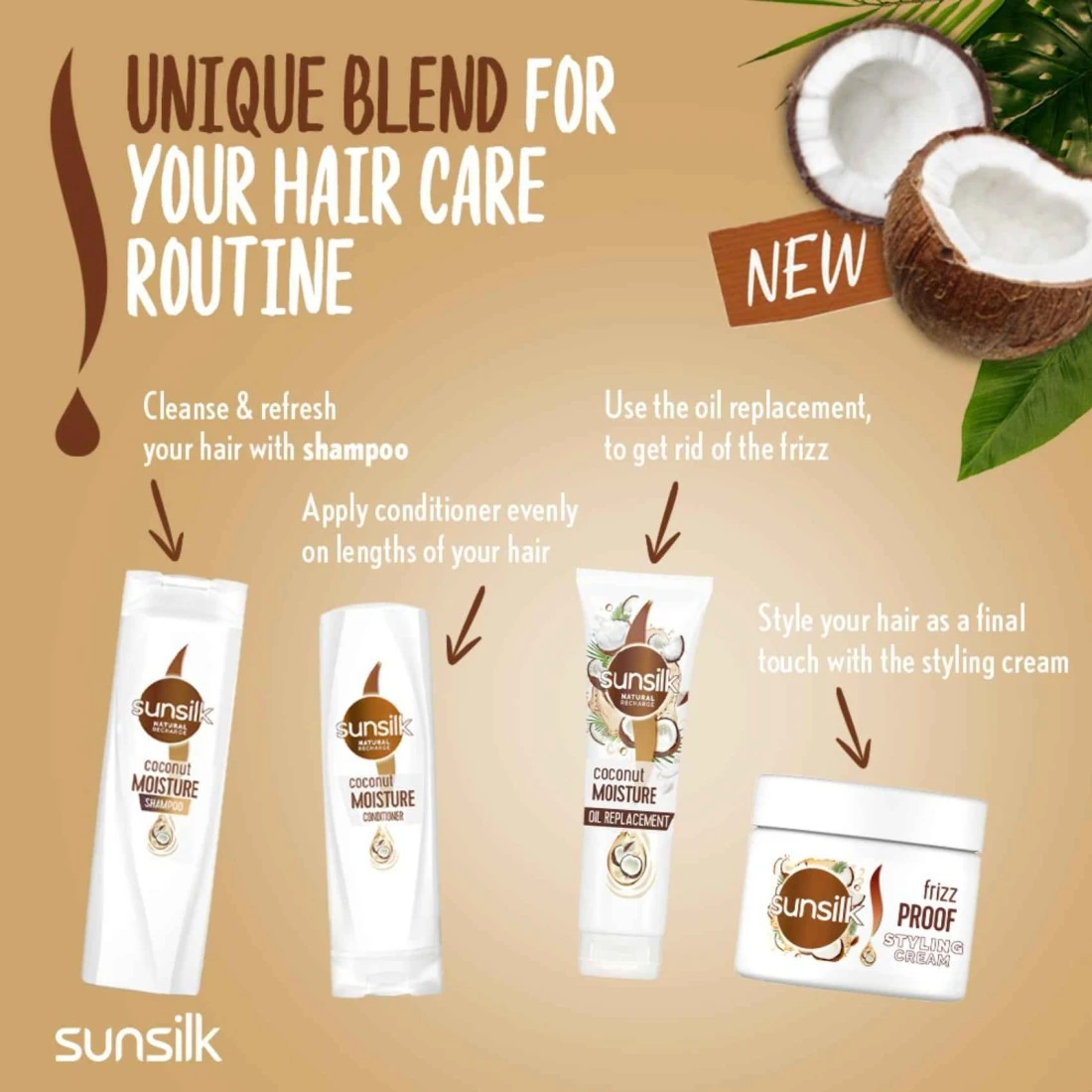 - Enjoy the divine pleasure of Sunsilk Coconut Moisture conditioner blended with the nourishing and moisturising Coconut Oil.