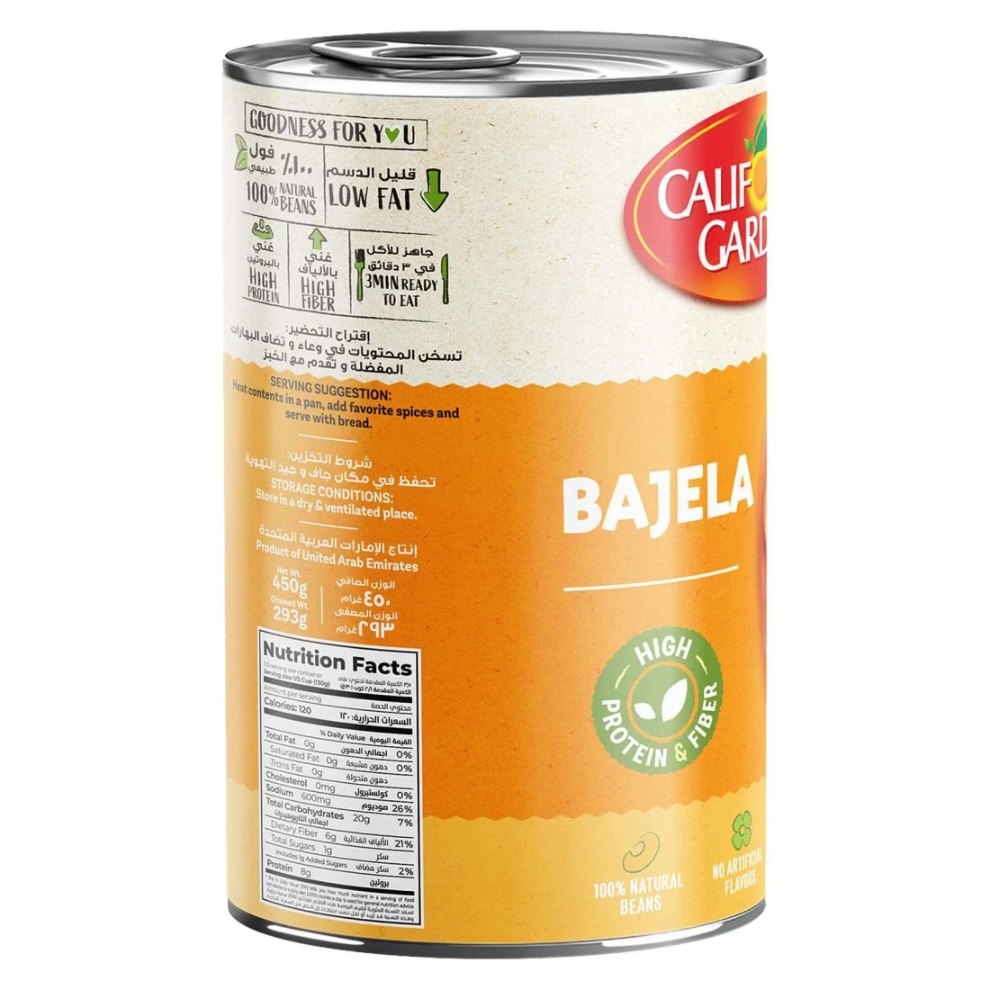 California Garden Bajela is a popular Middle Eastern dish made with fava beans. This 450g pack contains pre-cooked and ready-to-eat fava beans that are seasoned with select herbs and spices giving them a delicious and authentic flavour. It can be enjoyed as a standalone dish or used as an ingredient in a variety of recipes such as wraps salads or dips. California Garden Bajela is a convenient and nutritious option for anyone looking to add a taste of the Middle East to their meal.
