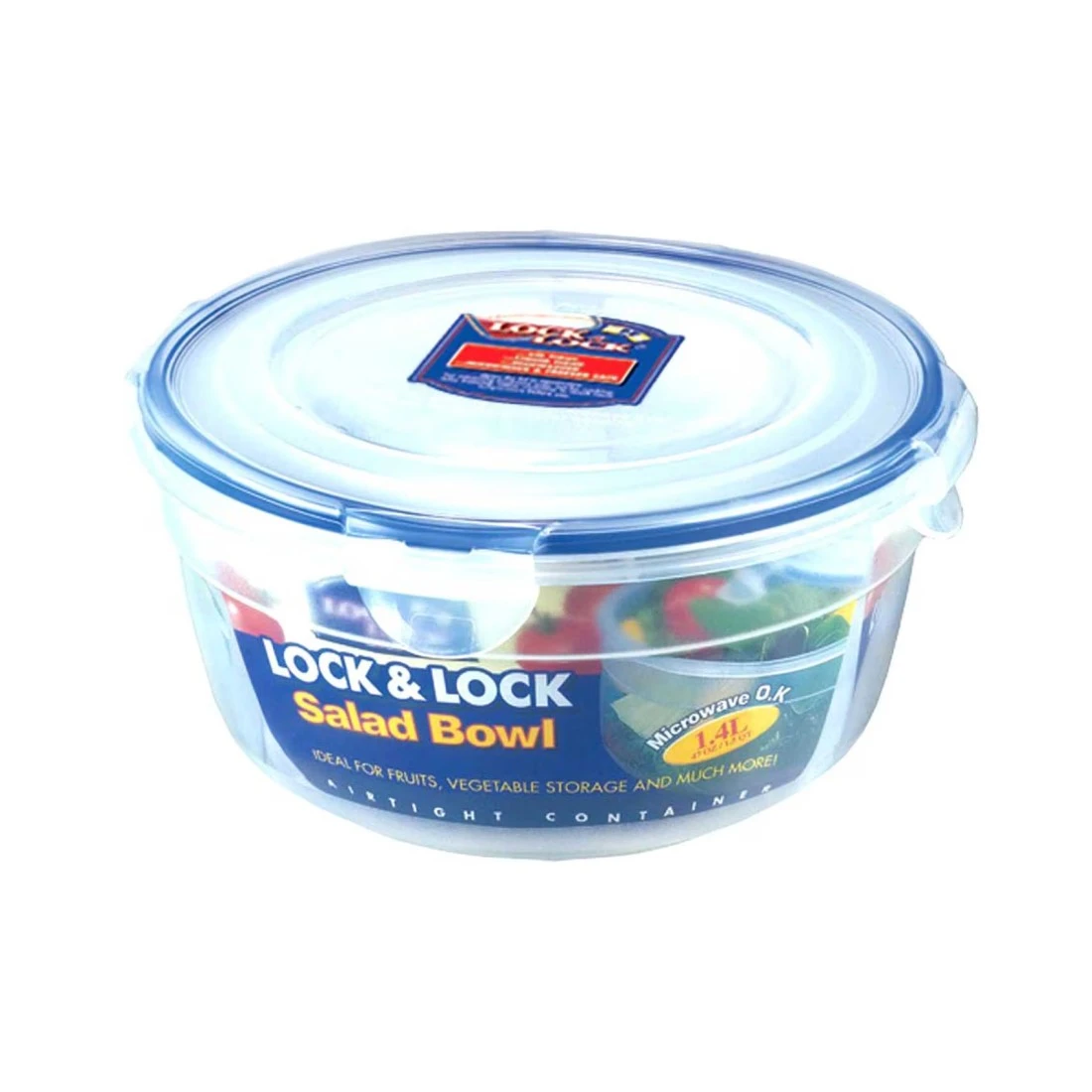 Lock & Lock Round Salad Bowl With Lid Clear/Blue 1.4L