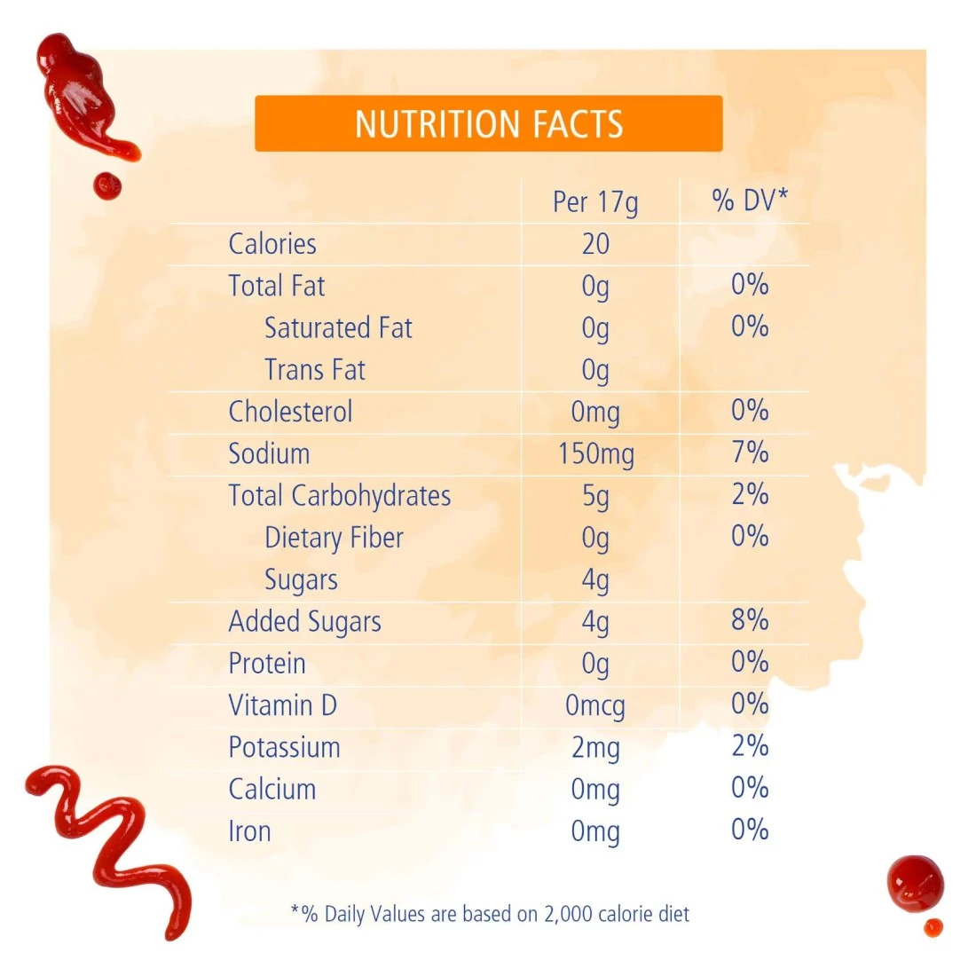 - This ketchup contains no fat, catering to those seeking low-fat options